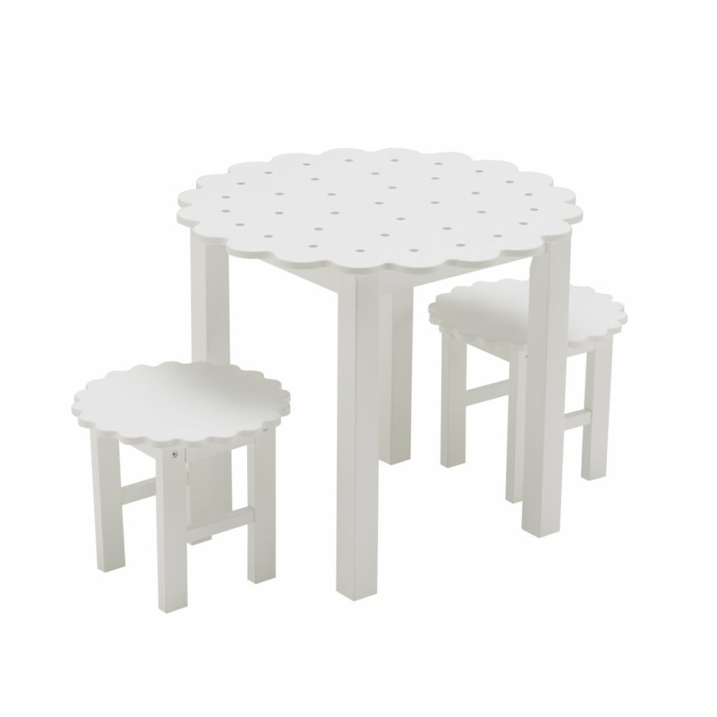 Roztomilý drevený detský stolík v tvare Cookie v sade s 2 stoličkami, ideálny do detskej izby. Skvelé miesto pre hranie, maľovanie a rozvoj kreatívnych zručností. Sada obsahuje stôl a 2 stoličky.