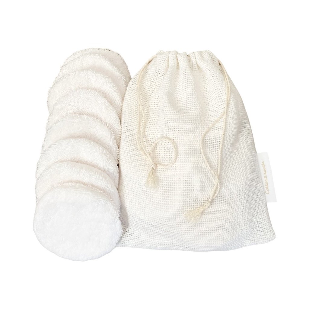 Vanilkové látkové vatičky Reusable Care Pads boli vytvorené z lásky k prírode a z lásky k planéte. Ideálne na odličovanie a utieranie detských úst alebo rúk.