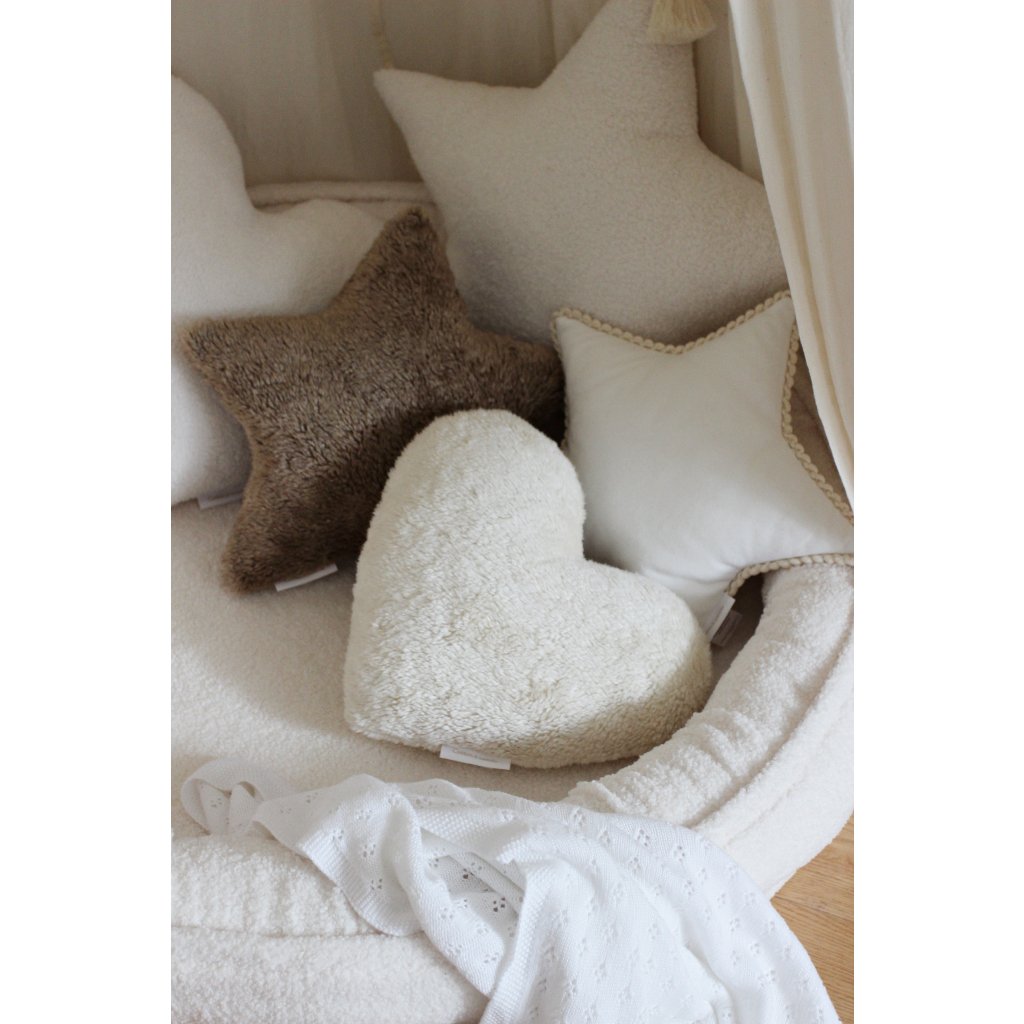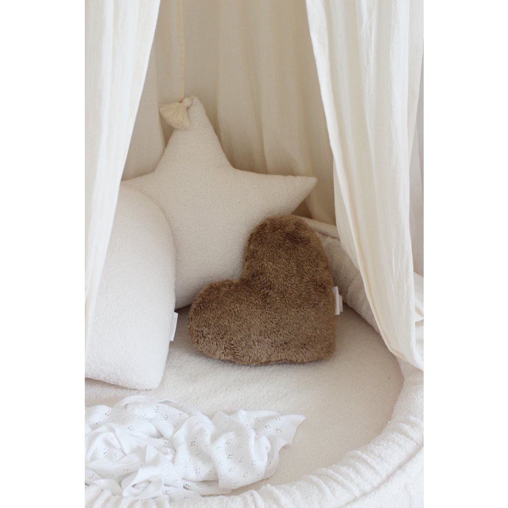 Vankúš Boho - srdce, imitácia ovčej vlny v čokoládovej farbe dokonale zapadá do súčasných trendov a zútulní každú miestnosť v ktorej sa objaví. Ideálne do spálne, obývačky a detskej izby.