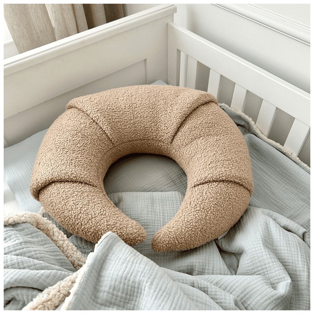 Rozkošný a praktický vankúšik nevyhnutný na kŕmenie vášho dieťatka. Viacúčelový vankúšik v tvare croissantu je vyrobený z módnej látky teddy boucle. Vankúš poslúži ako dokonalý spoločník pri spánku, ako výborná opora pri čítaní alebo ako vankúš na kŕmenie. Perfektný vankúš pre celú rodinu.