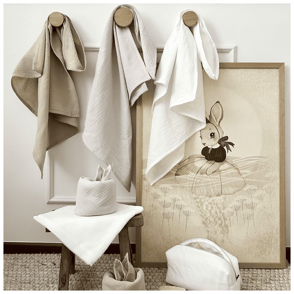 SADA obsahuje: zavinovačku, osušku,mušelínovú plienku, cumlík, relaxačnú kefu, vyčesávaciu kefu.