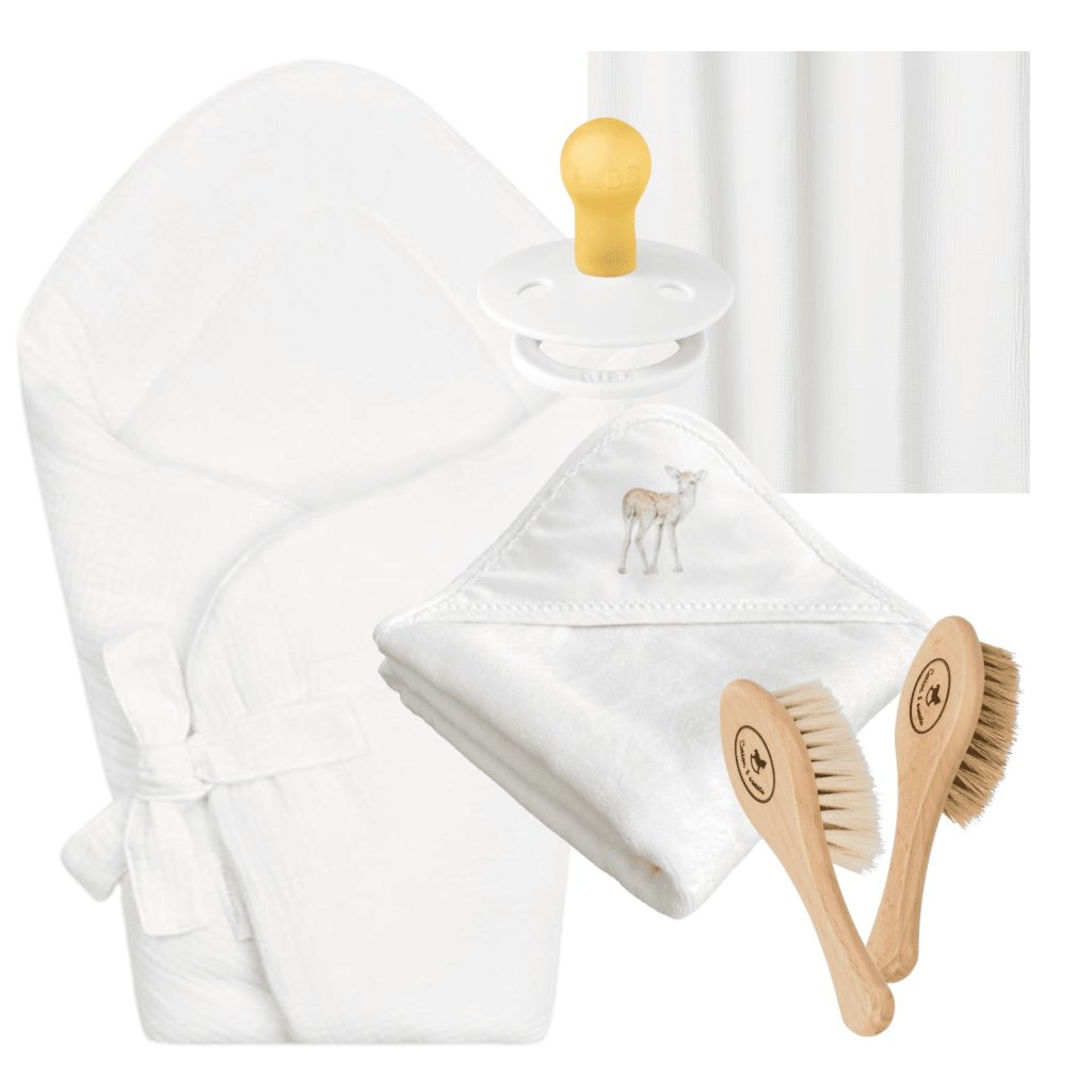 Zladená novorodenecká štartovacia súprava môže slúžiť ako základná výbavička pre novorodenca. Skladá sa zo šiestich výrobkov, ktoré budú bábätku užitočné od jeho prvého dňa života.