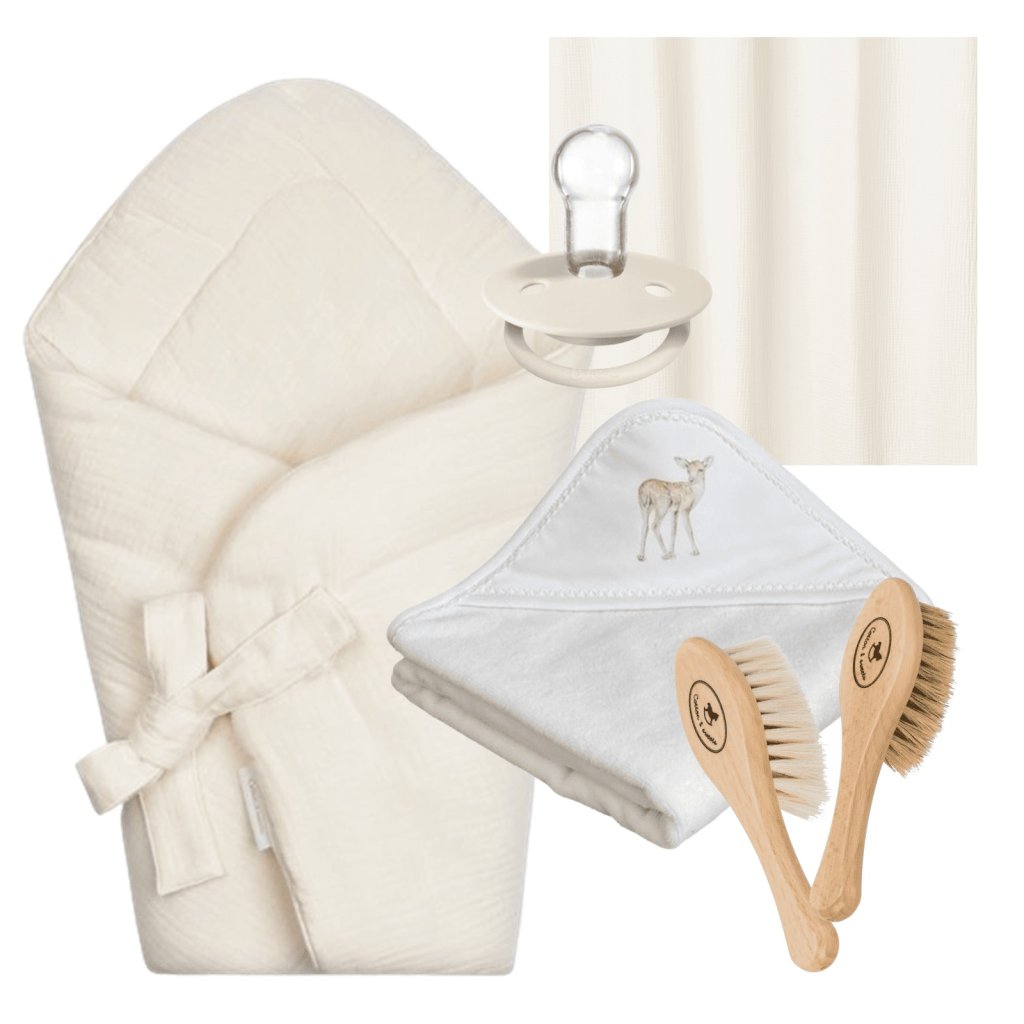 Zladená novorodenecká štartovacia súprava môže slúžiť ako základná výbavička pre novorodenca. Skladá sa zo šiestich výrobkov, ktoré budú bábätku užitočné od jeho prvého dňa života.