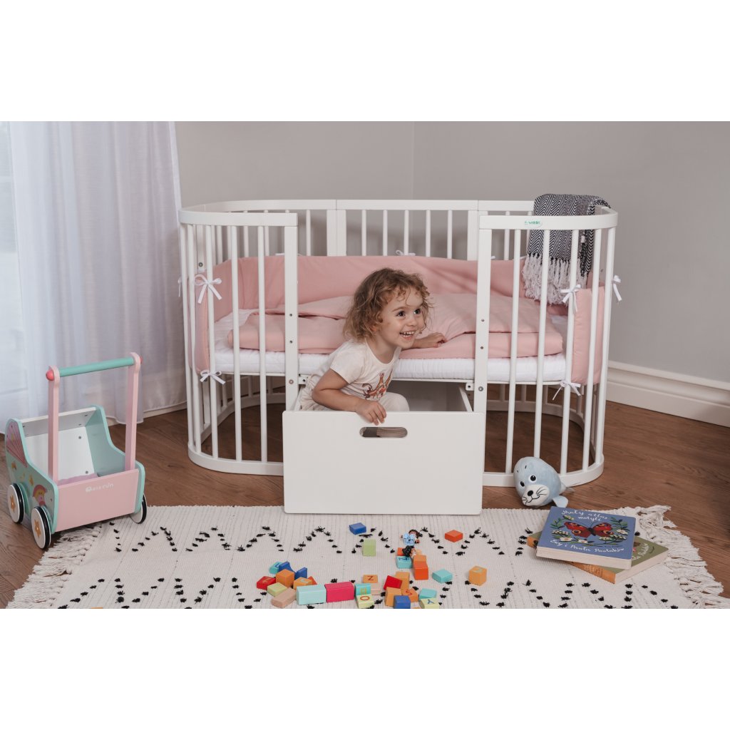 - Zaoblený tvar detskej postieľky podporuje psychickú rovnováhu a pripomína dieťaťu známe prostredie počas tehotenstva. To je dôvod, prečo je to záruka pokojného a zdravého spánku vášho dieťaťa.