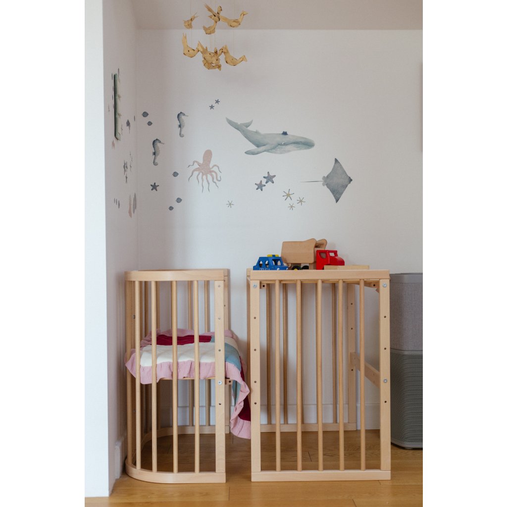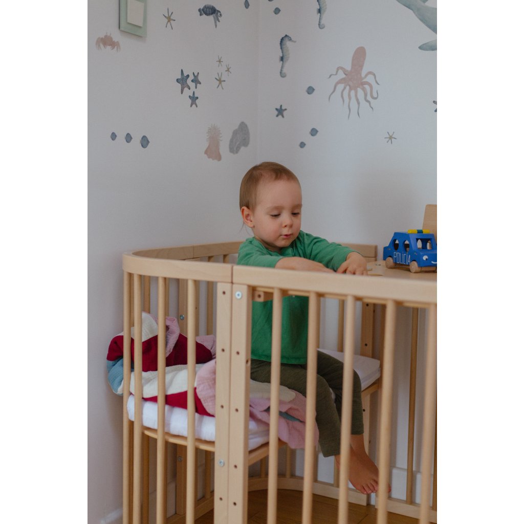 • multifunkčná, prispôsobiteľná detská postieľka / kolíska / ohrádka a junior posteľ v jednom