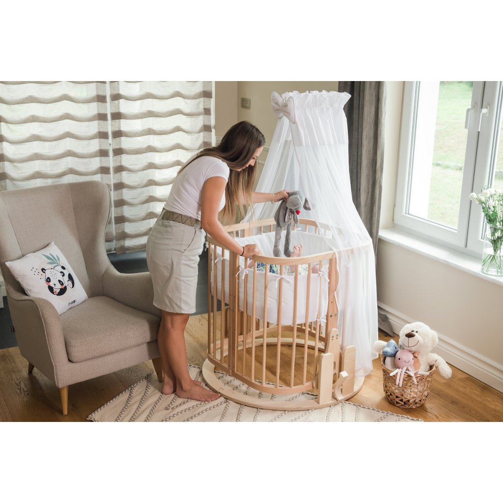• Zaoblený tvar detskej postieľky podporuje psychickú rovnováhu a pripomína dieťaťu známe prostredie počas tehotenstva. To je dôvod, prečo je to záruka pokojného a zdravého spánku vášho dieťaťa.