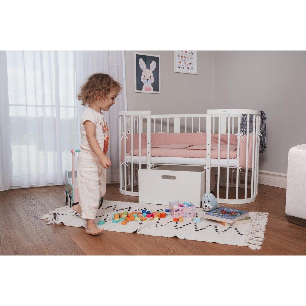 - Zaoblený tvar detskej postieľky podporuje psychickú rovnováhu a pripomína dieťaťu známe prostredie počas tehotenstva. To je dôvod, prečo je to záruka pokojného a zdravého spánku vášho dieťaťa.