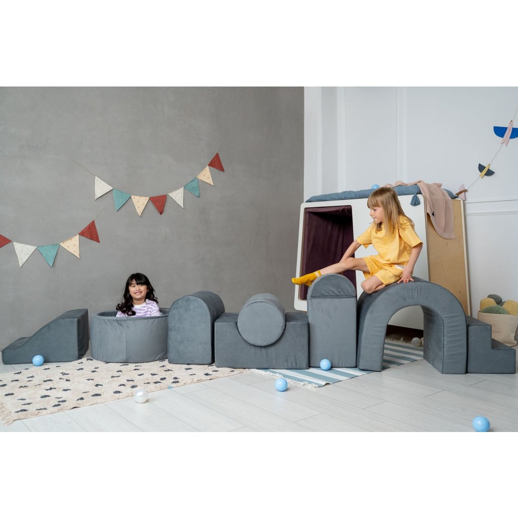 Každý rodič sníva o detskom ihrisku, ktoré je bezpečné, pohodlné a zároveň zaisťuje maximálnu zábavu. Teraz si môžete vytvoriť ihrisko vo svojom vlastnom dome! Naše rekreačné bloky nielen stimulujú detskú fantáziu, ale učia aj tvorivému mysleniu. Sada modulov môže slúžiť na zábavu, ale aj na cvičenie, na vytváranie prekážkových dráh alebo priestorových štruktúr. Jednotlivé prvky je možné použiť ako taštičky alebo sedáky.