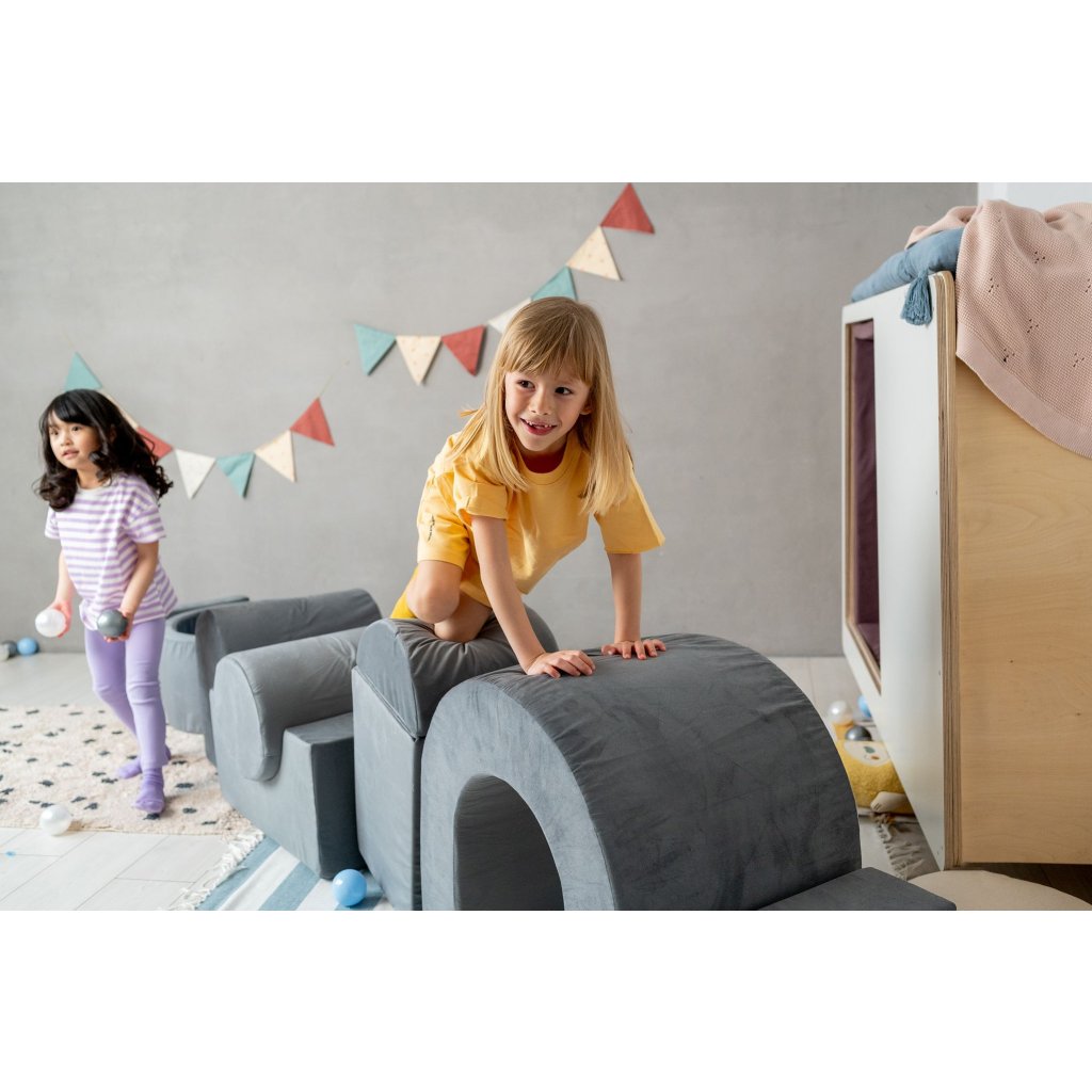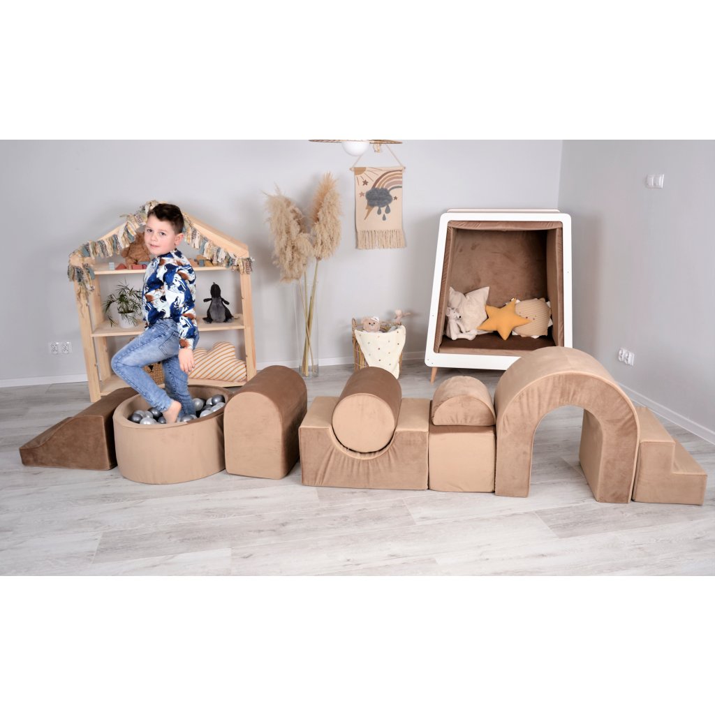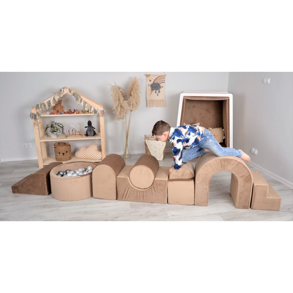 Každý rodič sníva o detskom ihrisku, ktoré je bezpečné, pohodlné a zároveň zaisťuje maximálnu zábavu. Teraz si môžete vytvoriť ihrisko vo svojom vlastnom dome! Naše rekreačné bloky nielen stimulujú detskú fantáziu, ale učia aj tvorivému mysleniu. Sada modulov môže slúžiť na zábavu, ale aj na cvičenie, na vytváranie prekážkových dráh alebo priestorových štruktúr. Jednotlivé prvky je možné použiť ako taštičky alebo sedáky.
