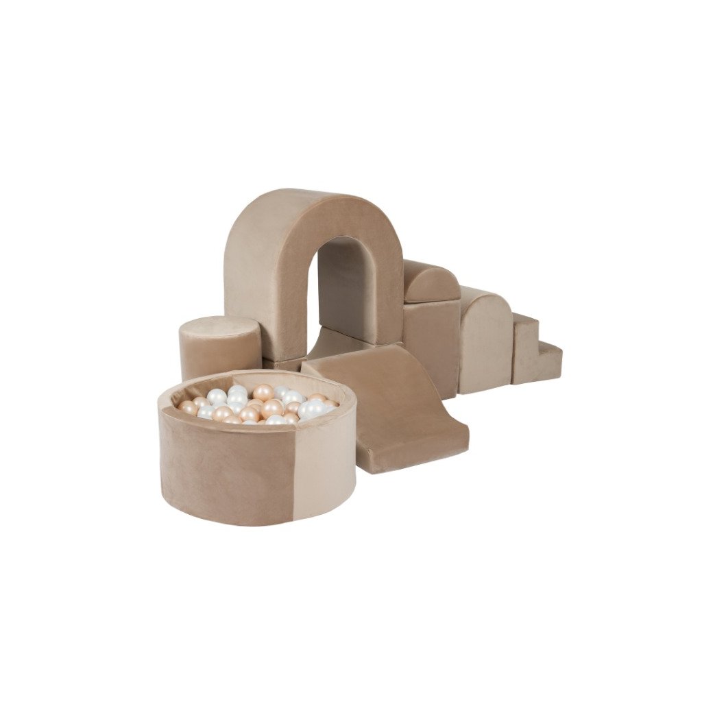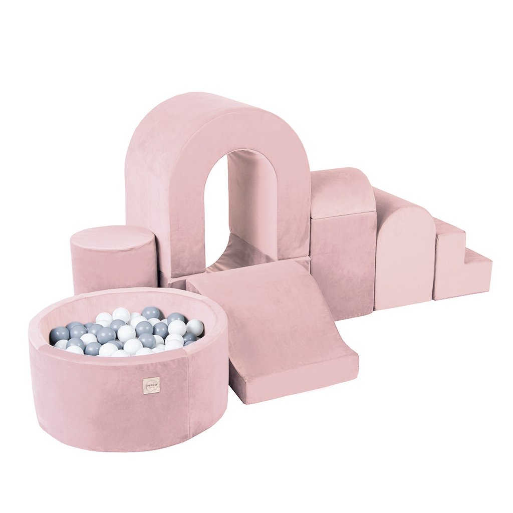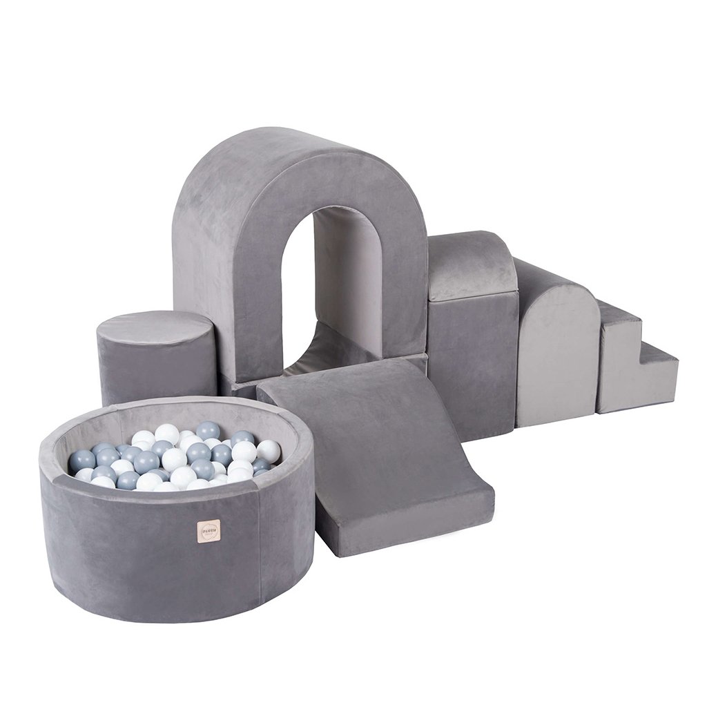 Súprava sa vyrába ručne zo špičkových materiálov, ktoré sú 100% antialergénne. Výplň jednotlivých častí tvorí 100% PUR pena a snímateľný poťah je vyrobený zo príjemného velúrového materiálu (100% polyester), ľahko ho tak vyperiete pri zašpinení v práčke. Loptičky sú zo 100% LDPE a ich výhodou je, že nemajú typický zápach plastu, navyše sa po stlačení navrátia do pôvodného tvaru. Bežná očista je navyše jednoduchá - stačí len utrieť vlhkou handričkou.