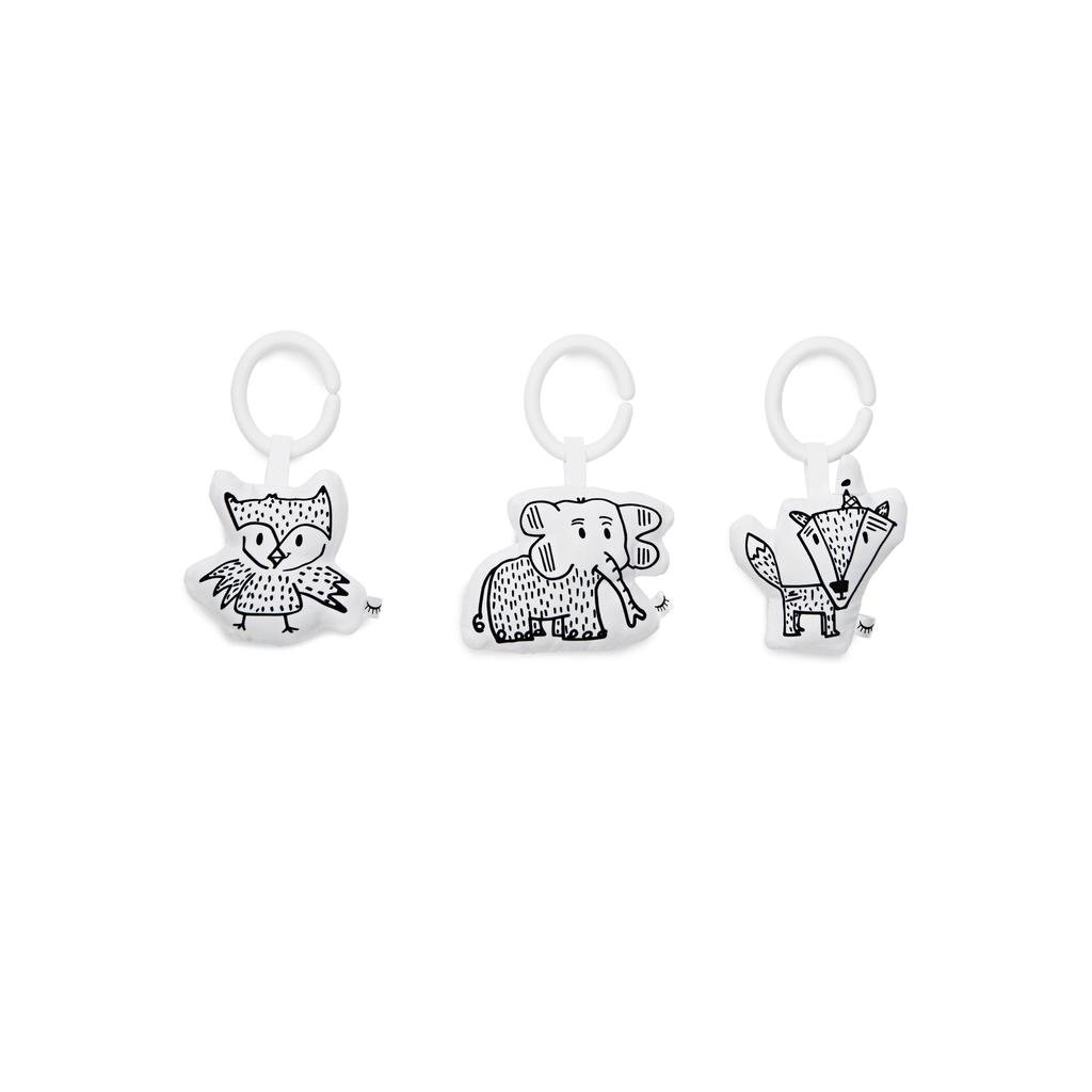 Sada hračiek Cheeky Chums je kompatibilná s Hracou hrazdou DockATot®. Tri čiernobiele hračky podporujú zmyslový rozvoj dieťatka.
