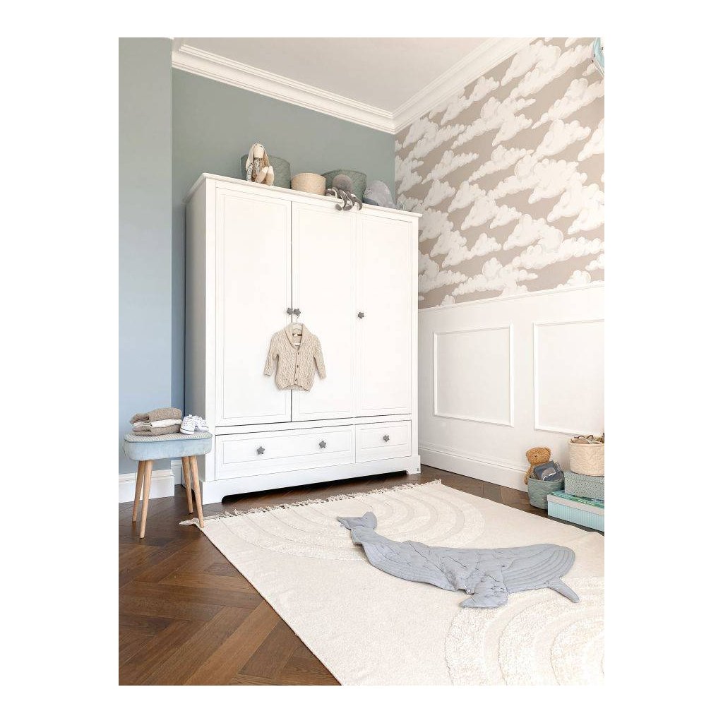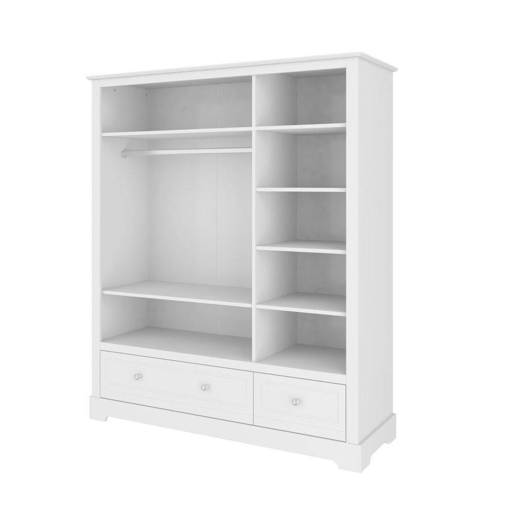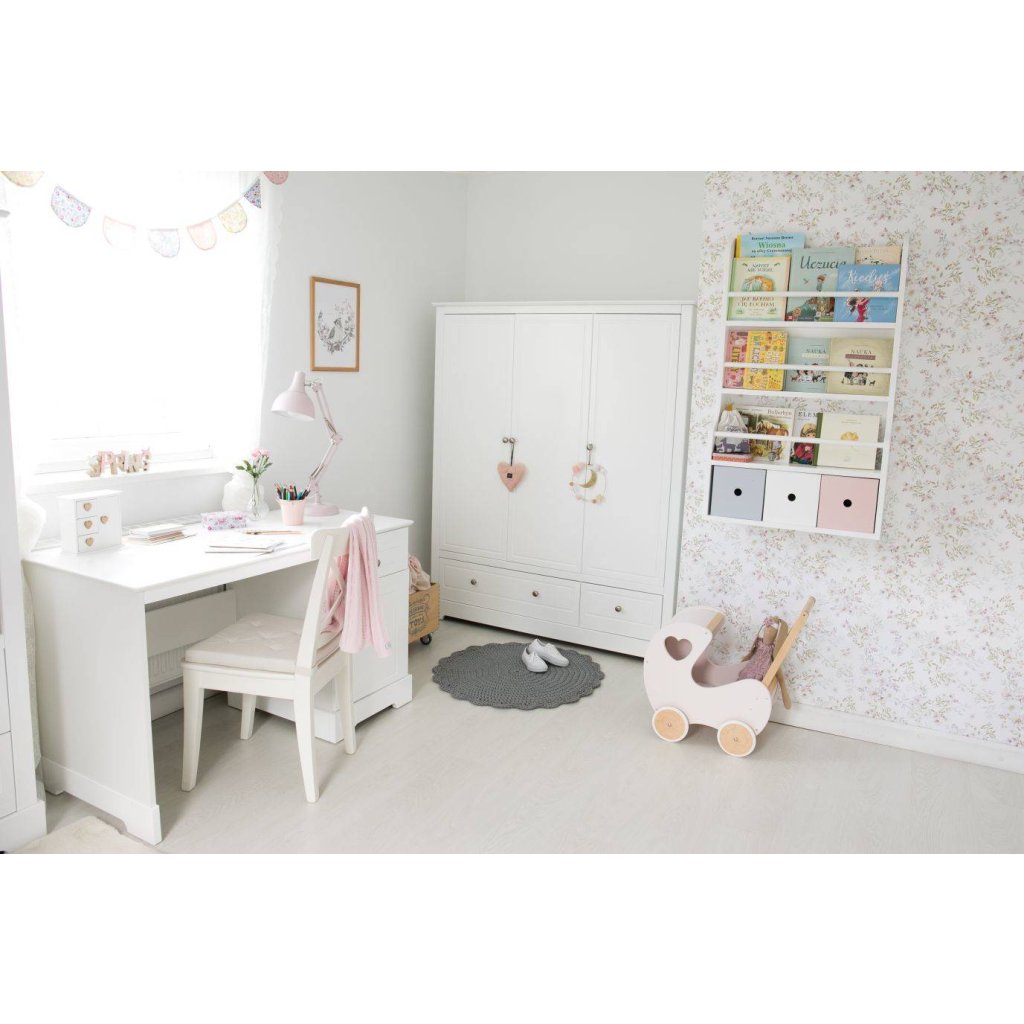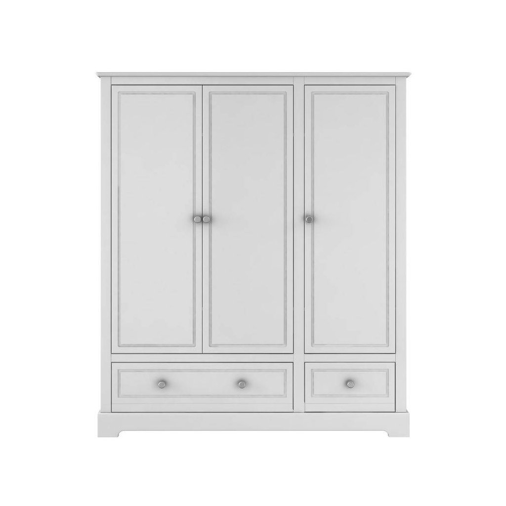 3-dverová šatníková skriňa Elegance disponuje širšou a užšou časťou a zásuvkami v spodnej časti. V širšej časti je závesná tyč a 2 priestrané police po celej šírke tejto časti. V užšej časti sú police z ktorých sú 3 nastaviteľné. Kolekcia Marylou je vyrobená z vysokokvalitnej MDF dosky natretá bielou nezávadnou farbou. Na zvýšenie bezpečnosti a pohodlia pri používaní sa používajú bezpečné a spoľahlivé vodiace koľajnice s funkciou samozatvárania. Rozmery: Š-146,5 x H-52,5 x V-174,5 cm
