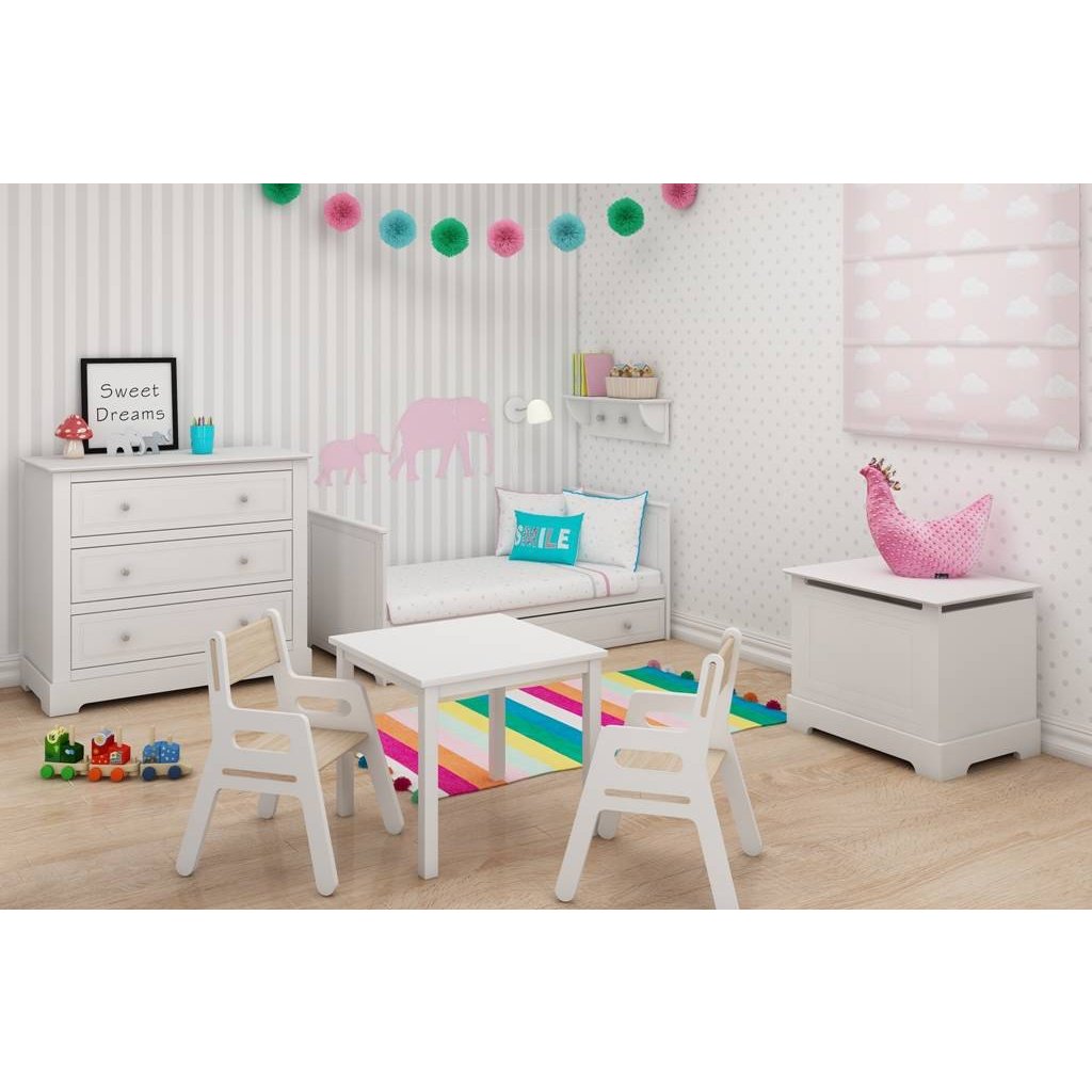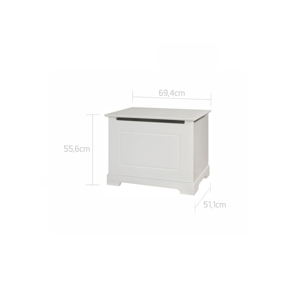 Úložny box na hračky je vhodný na usporiadanie neporiadku v detskej izbe. Kolekcia Elegance je vyrobená z vysokokvalitnej MDF dosky natretá bielou nezávadnou farbou. Na zvýšenie bezpečnosti a pohodlia pri používaní sa používajú bezpečné a spoľahlivé vodiace koľajnice s funkciou samozatvárania.