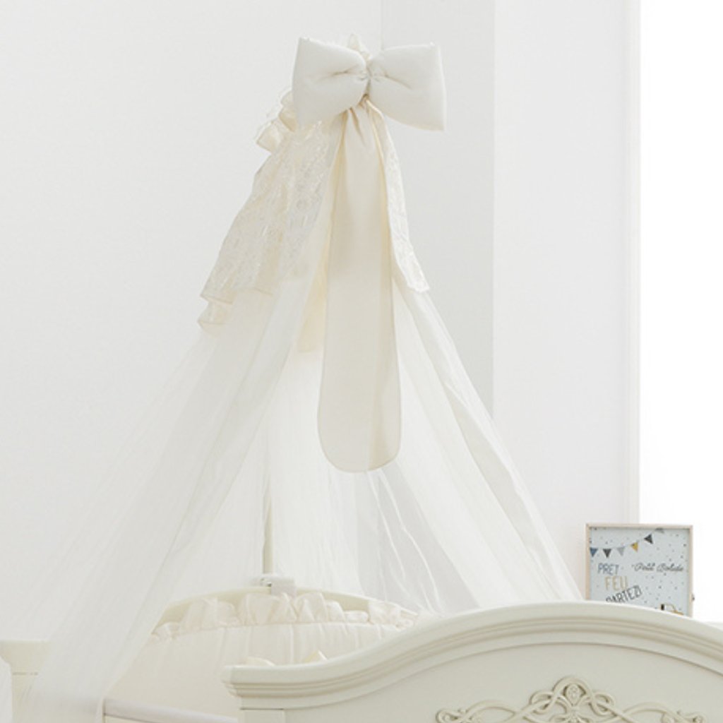 Elegantný tylový baldachýn s držiakom s rýchlo upínacím systémom na detskú postieľku. Baldachýn je elegantný doplnok, vďaka ktorému bude detská postieľka útulnejšia a dieťa sa bude cítiť bezpečnejšie. Baldachýn chráni dieťa pred prievanom, muchami a komármi.