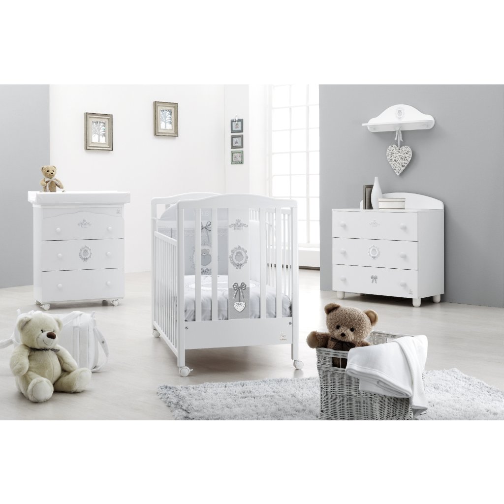 Spolu s doplnkami z kolekcie Baby Chic vytvoríte skutočné rozprávkové prostredie pre váš malý poklad. K postieľke si môžete doplniť mantinel, perinku a vankúšik, prebaľovací pult, komodu, skriňu a celý rad textilných doplnkov z danej kolekcie. K postieľke si nezabudnite vybrať vhodnýmatrac s rozmerom 63x125cm, chránič matraca a antirefluxný vankúšik do postieľky. Postieľku ľahko zútulníte prateľným detským kobercom, ktorý si doma operiete v bežnej domácej práčke.