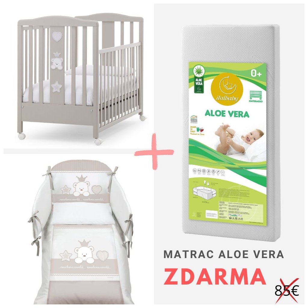 Italbaby detská postieľka so spúšťacím bokom Baby Re hnedá s komplet výbavou + matrac ZDARMA