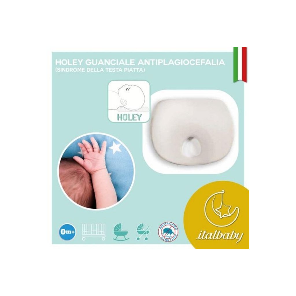Špeciálne tvarovaný vankúšik zabraňuje zplošťovaniu hlavičky bábätka tým, že rovnomerne rozkladá tlak, ktorý je na mäkkú hlavičku novorodenca vyvíjaný.