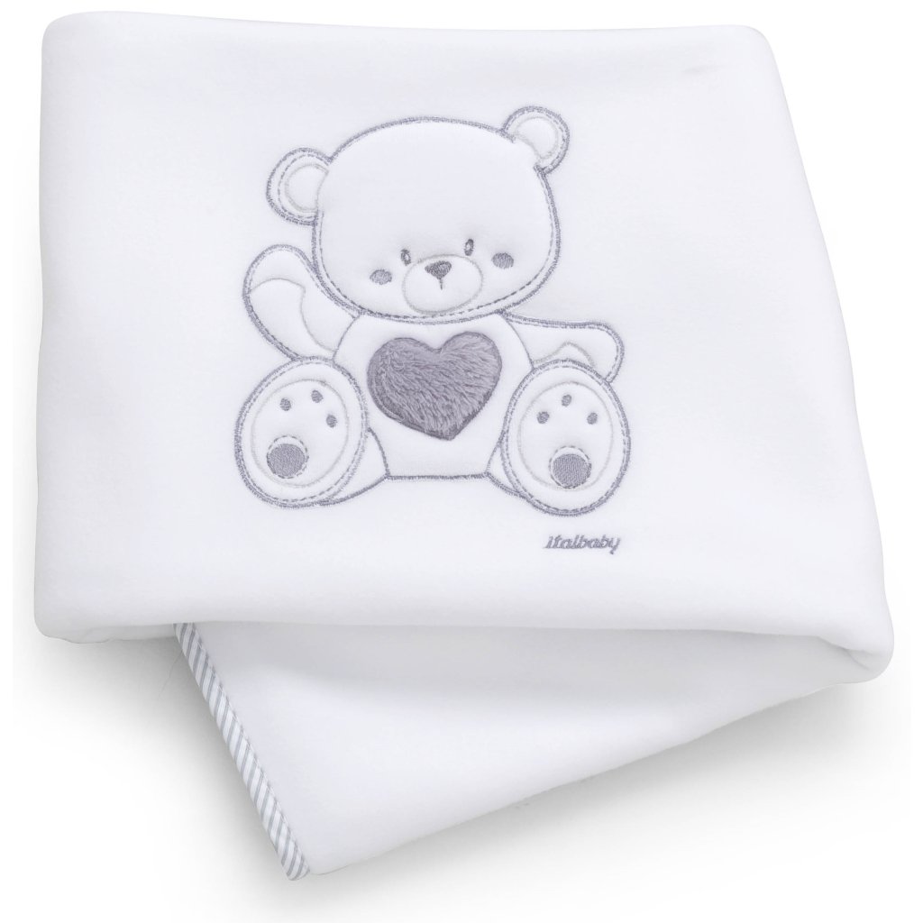 Jemná fleecová deka do postieľky vhodná najmä na sezónu jeseň/zima. Kvalitný materiál robí deku príjemne hebkú a výnimočne hrejivú. Deka sa dodáva v darčekovej krabičke Italbaby, vhodná aj ako darček.