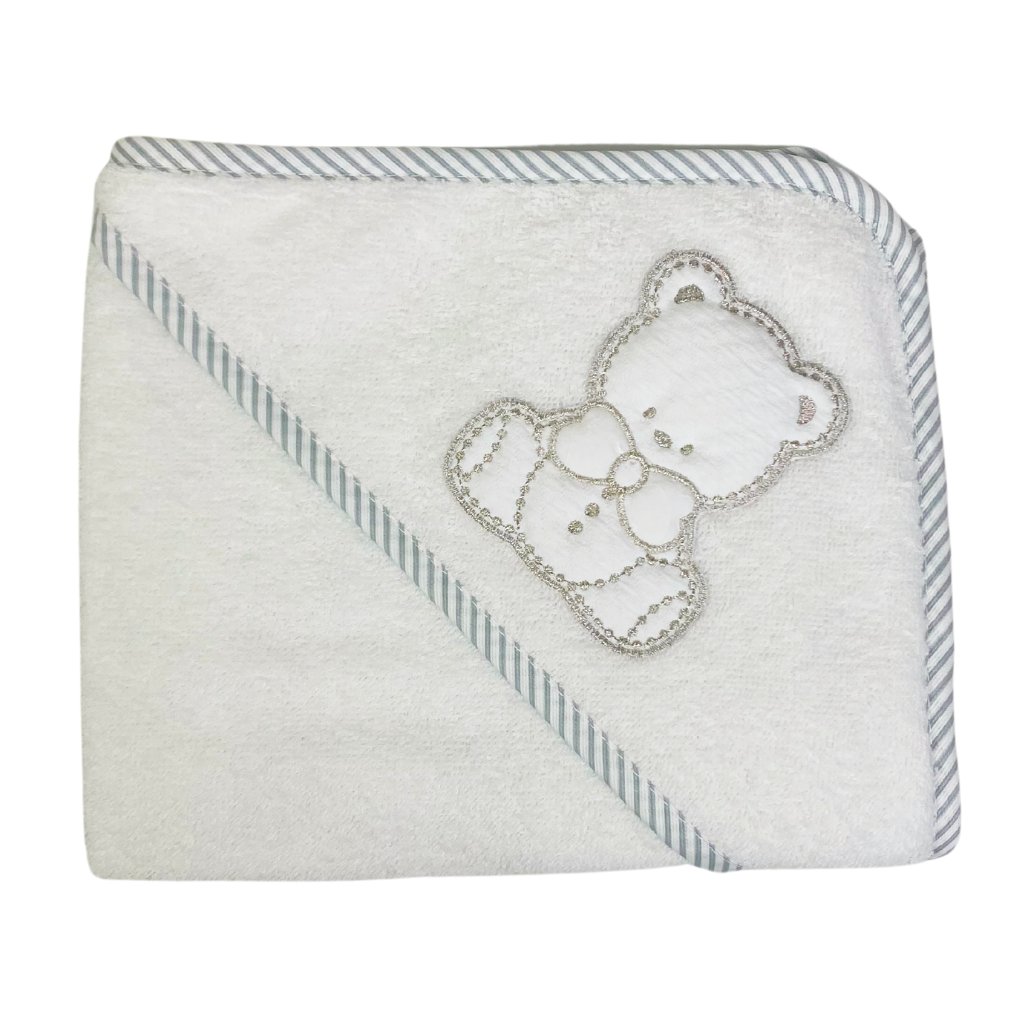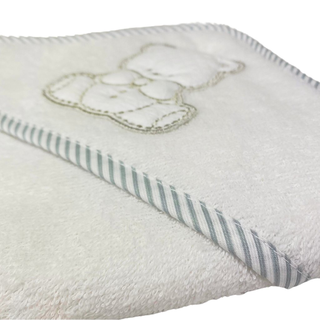 Bavlnená froté osuška pre novorodenca s kapucňou a žinkou v darčekovej krabičke. Vyrobené zo 100% certifikovanej bavlny v Taliansku. Ideálne ako darček.