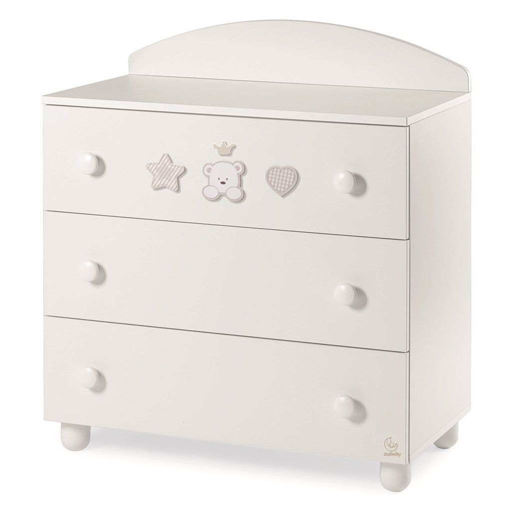 Praktická detská komoda s 3 priestrannými zásuvkami. Ku komode odporúčame dokúpiť prebaľovaciu podložku alebo externý drevený rám na PVC podložku.