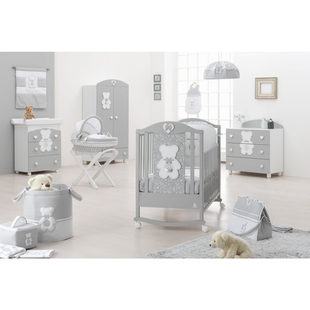 Praktická detská komoda s 3 priestrannými zásuvkami. Ku komode odporúčame dokúpiť prebaľovaciu podložku alebo externý drevený rám na PVC podložku. úchytky na skrini sú v tvare guľatej úchytky.