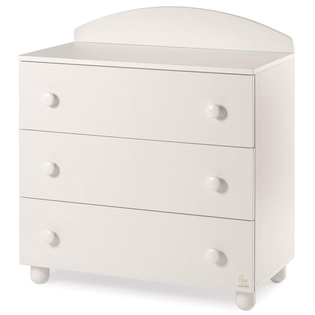 Praktická detská komoda s 3 priestrannými zásuvkami. Ku komode odporúčame dokúpiť prebaľovaciu podložku alebo externý drevený rám na PVC podložku.
