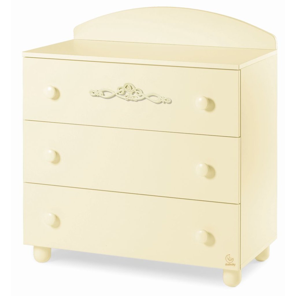 Praktická detská komoda s 3 priestrannými zásuvkami. Ku komode odporúčame dokúpiť prebaľovaciu podložku alebo externý drevený rám na PVC podložku.
