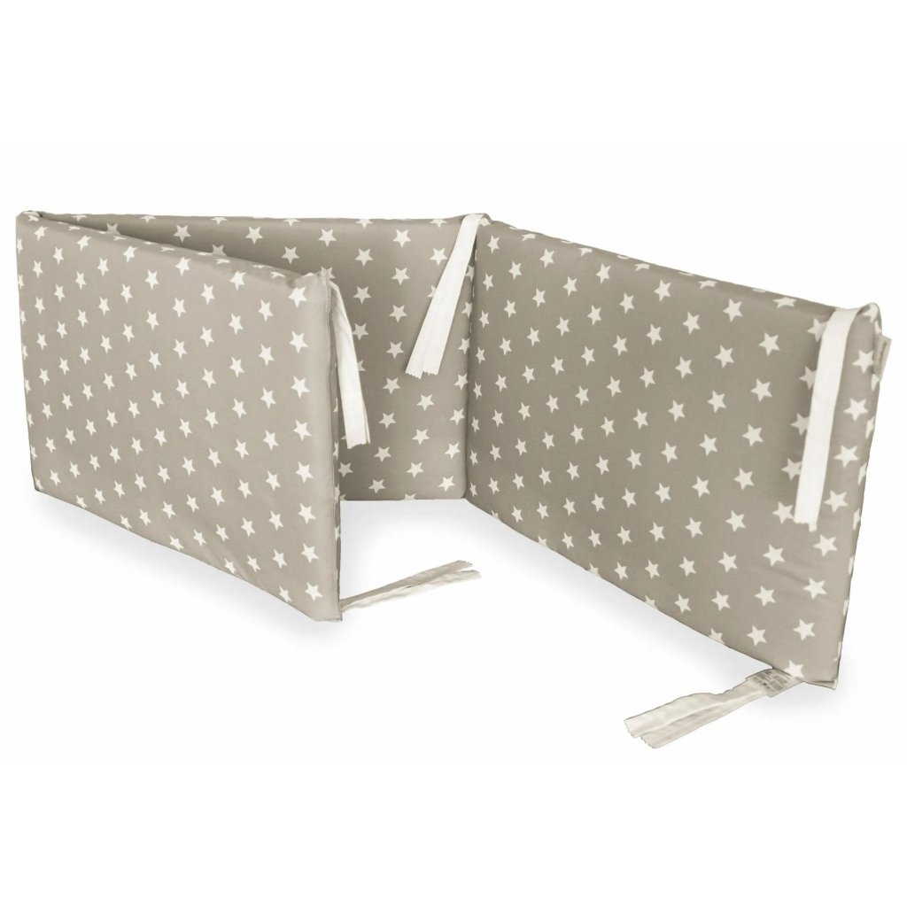 Univerzálny mantinel do postieľky v béžovej farbe. Tento mantinel je vhodný pre postieľky 60x120 cm alebo 63x125 cm (talianske postieľky).