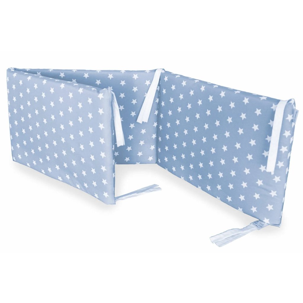 Univerzálny mantinel do postieľky v modrej farbe. Tento mantinel je vhodný pre postieľky 60x120 cm alebo 63x125 cm (talianske postieľky).