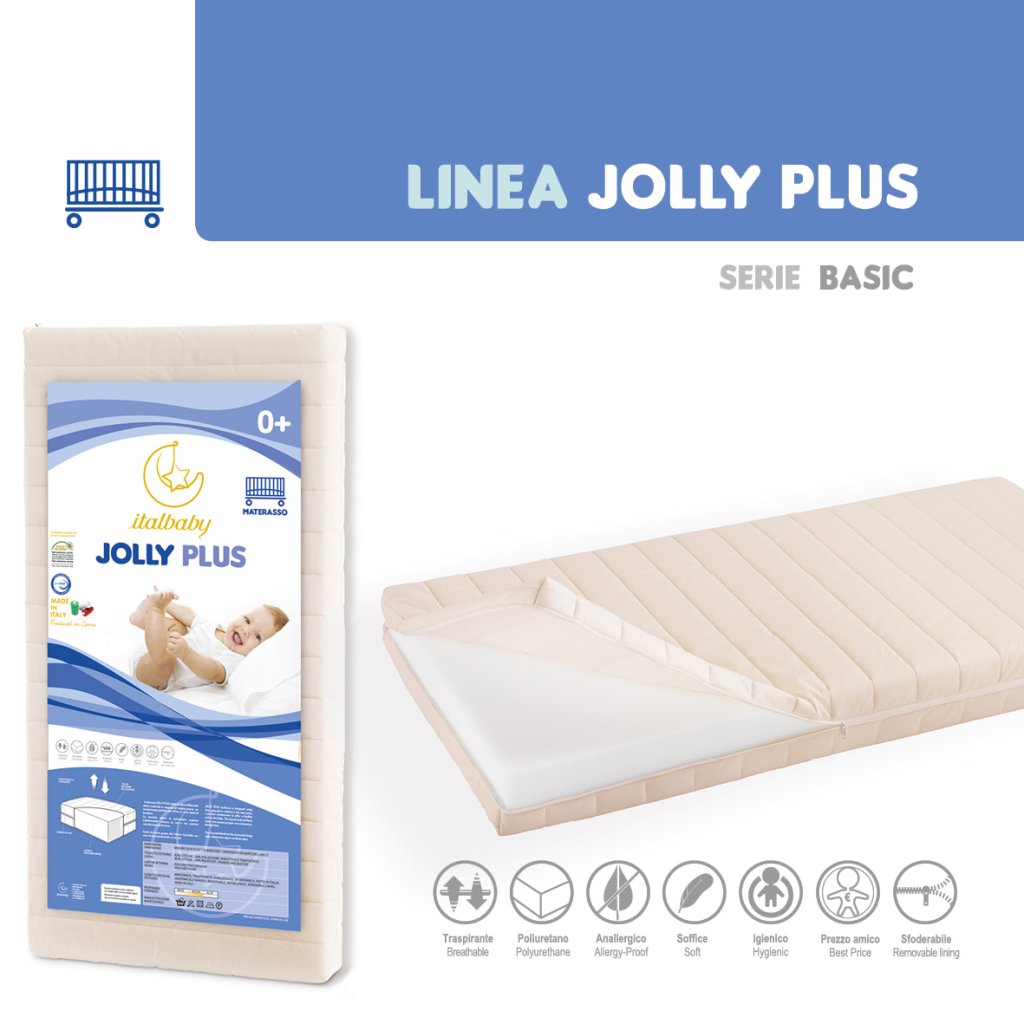 Jolly Plus je dostupný už v niekoľkých veľkostiach, aby uspokojil potreby všetkých ľudí. Je lemovaný jemnou tkaninou polycotton, prešitý vrstvou polyesteru, ktorá umožňuje neustály priechod vzduchu pre pohodlný spánok vášho dieťaťa.