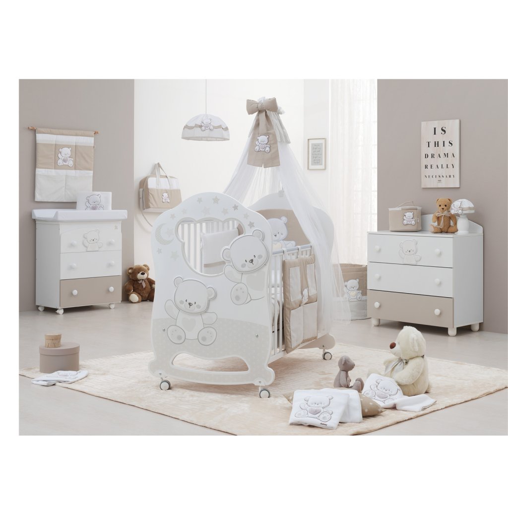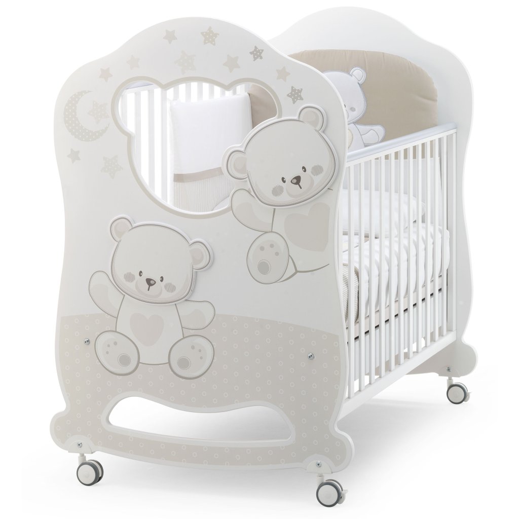 Talianska postieľka s posuvnými bočnicami. K postieľke je možné dokúpiť kompletnú kolekciu z izbičky Jolie ako komodu, skriňu a doplnky do detskej izbičky.