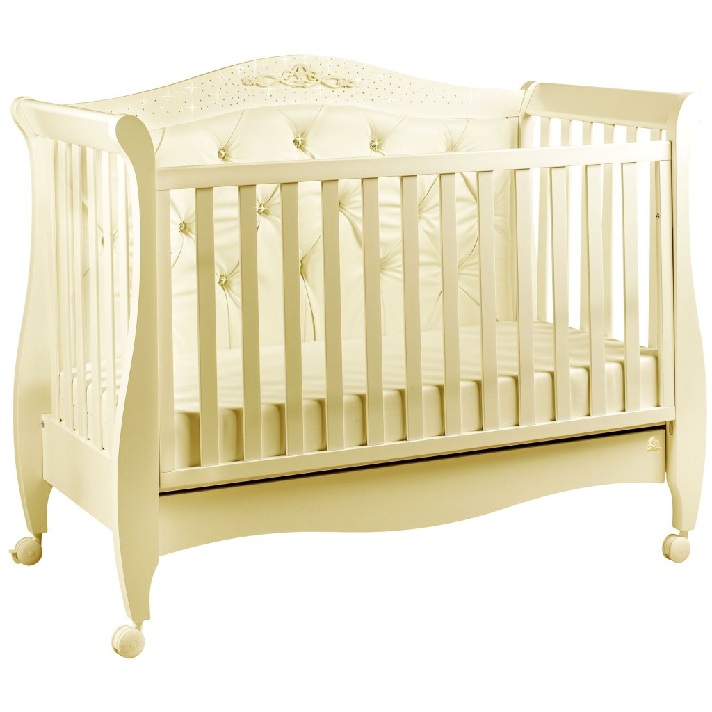 Romantická luxusná postieľka s kryštálykmi v bielej farbe s kolieskami. K postieľke je možné dokúpiť kompletnú kolekciu Manifique ako komodu, skriňu a doplnky do detskej izbičky.