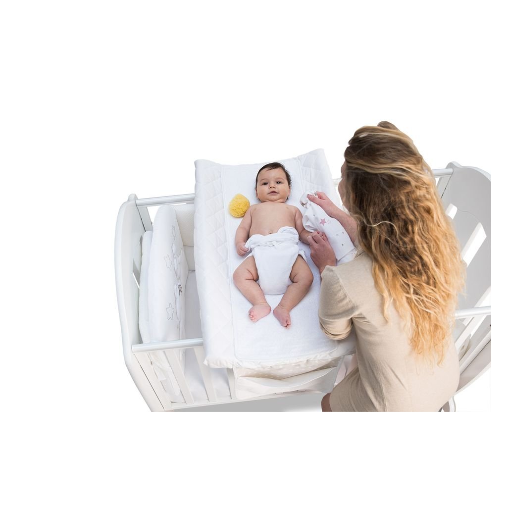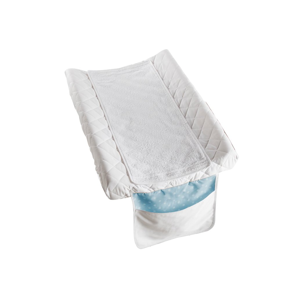Antibakteriálny a antialergický bavlnený nepremokavý poťah na PVC prebaľovaciu podušku s praktickým vreckom vyrobený v Taliansku zo 100% certifikovanej bavlny, ktorá nedráždi citlivú detskú pokožku. Návlek na podušku je užitočný počas každodennej starostlivosti pri prebaľovaní alebo kúpaní bábätka. Dostupný vo viacerých farbách: biela, ružová a modrá.