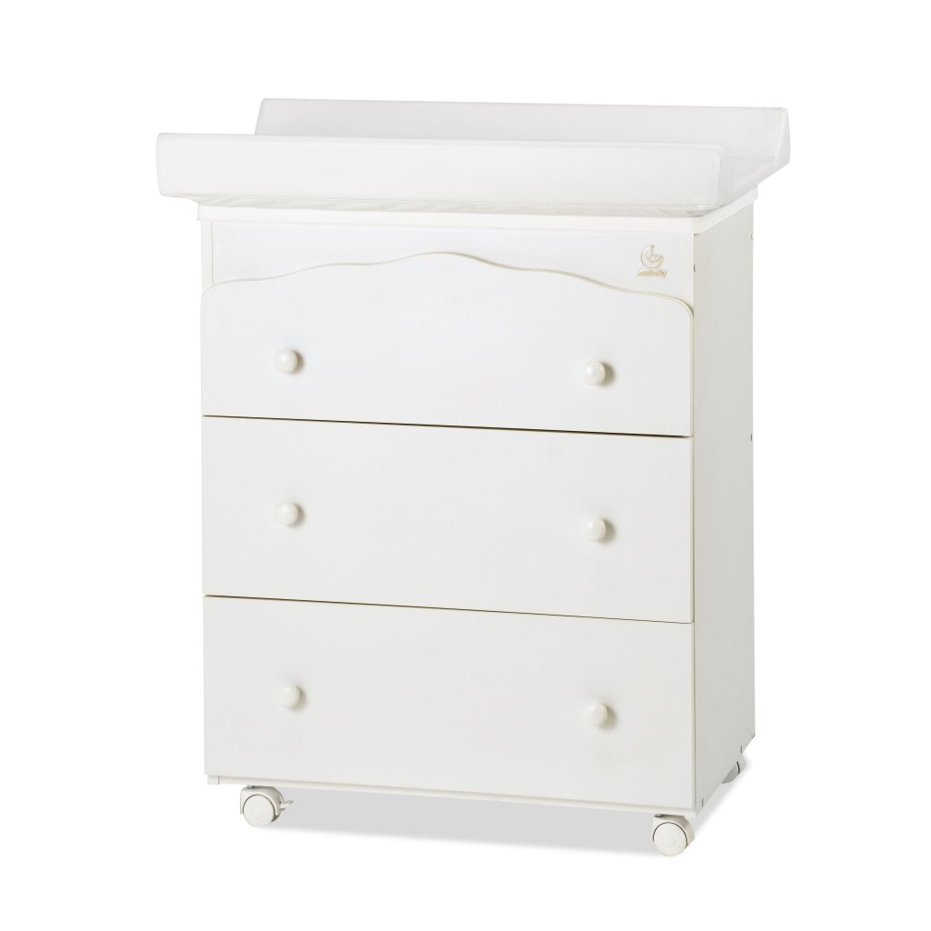 Praktický pult na prebaľovanie a kúpanie bábätka s 3 zásuvkami, do ktorých vložíte všetky potrebné veci Vášho bábätka. Prebaľovací pult na kolieskach s praktickou plastovou vaničkou vo vnútri. K pultu si môžete dokúpiť celý rad doplnkov z rovnakej kolekcie ako je detská postieľka, komoda alebo detské obliečky a vytvoriť tak dieťaťu rozprávkovú detskú izbu.