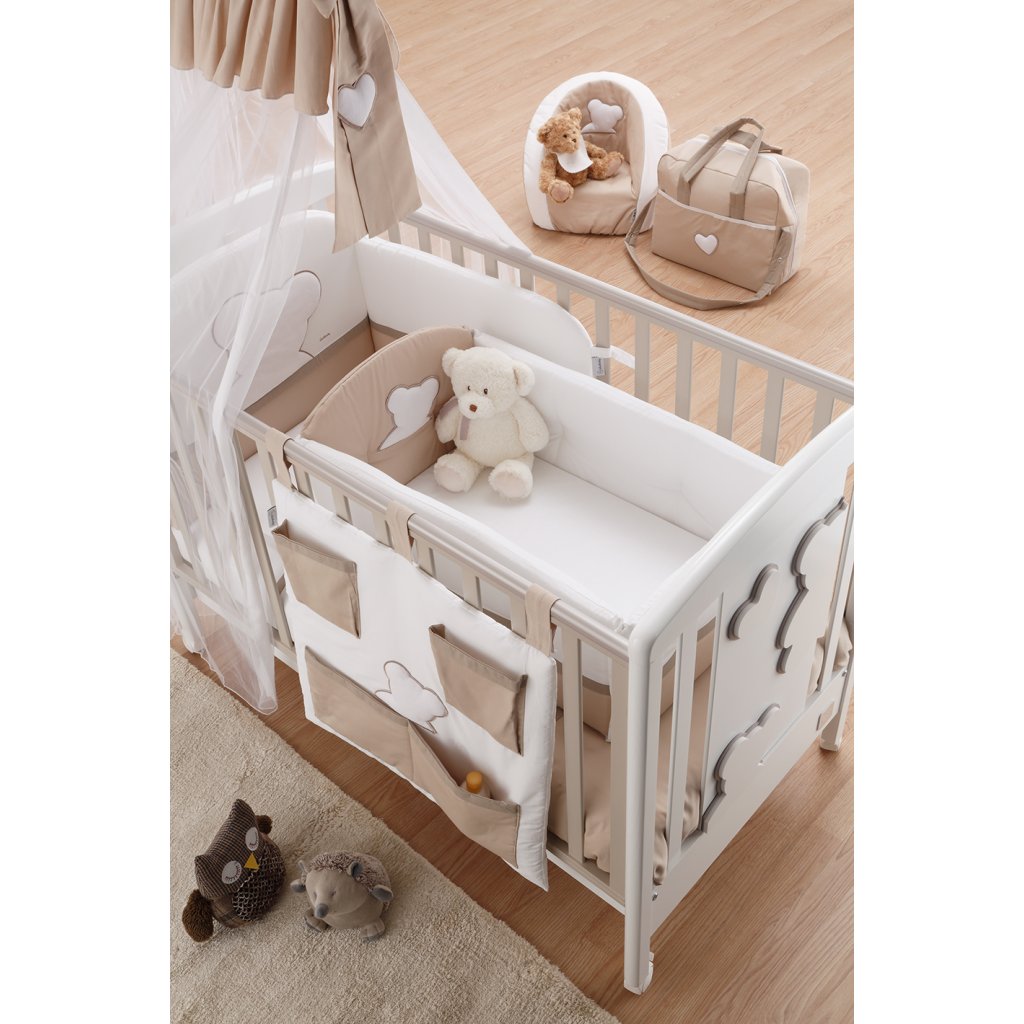 Praktický vreckár na postieľku do ktorých vložíte všetko, čo potrebujete na spanie alebo počas prebaľovania bábätka. Môžete doň uložiť napríklad plienky, jednorázové utierky, či krém alebo náhradný cumlík a počas choroby aj teplomer a pod. Závesný vreckár je vystužený a pôsobí veľmi elegantne. Vďaka svojmu rozmeru 60x60cm poskytuje štyri priestranné vrecká. Vreckár si môžete zavesiť na stenu alebo na postieľku vášho bábätka. Upevňuje sa pomocu suchému zipsu.