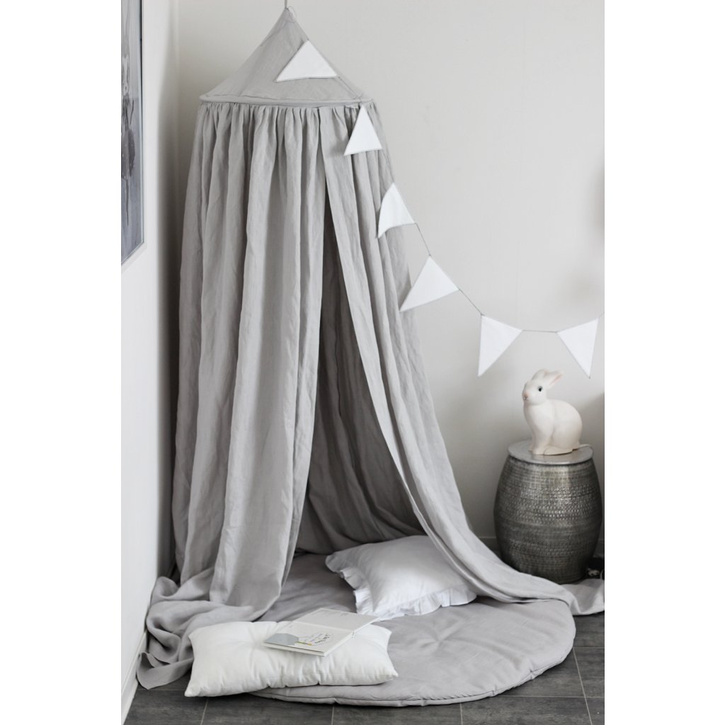 Baldachýn zo 100% ľanu, ktorý je antialergický a antibakteriálny - ideálny pre deti. Baldachýn je ľahký ako pavučinka a príjemný na dotyk.