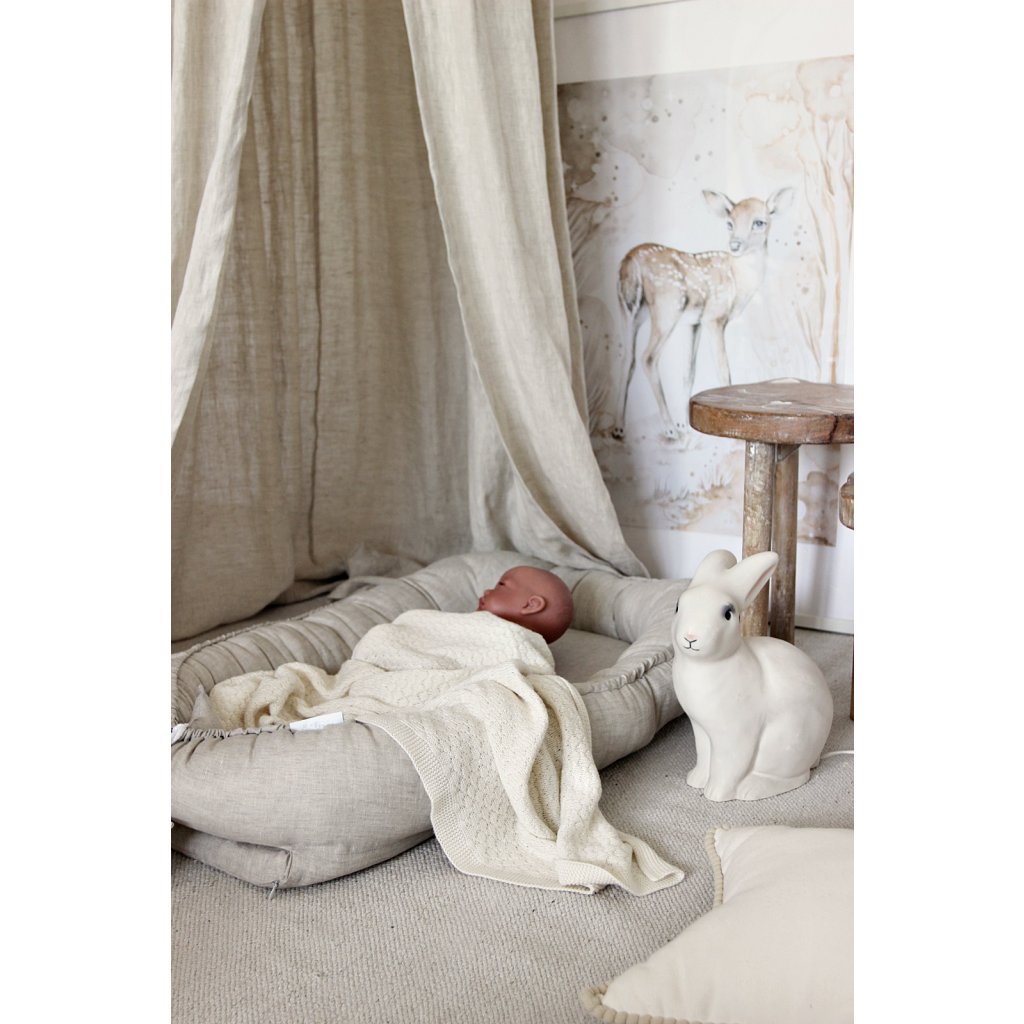 Baldachýn PURE NATURE je vyrobený zo 100% ľanu, ktorý sa charakterizuje ako antibakteriálny, antialergénny- ideálny pre deti.