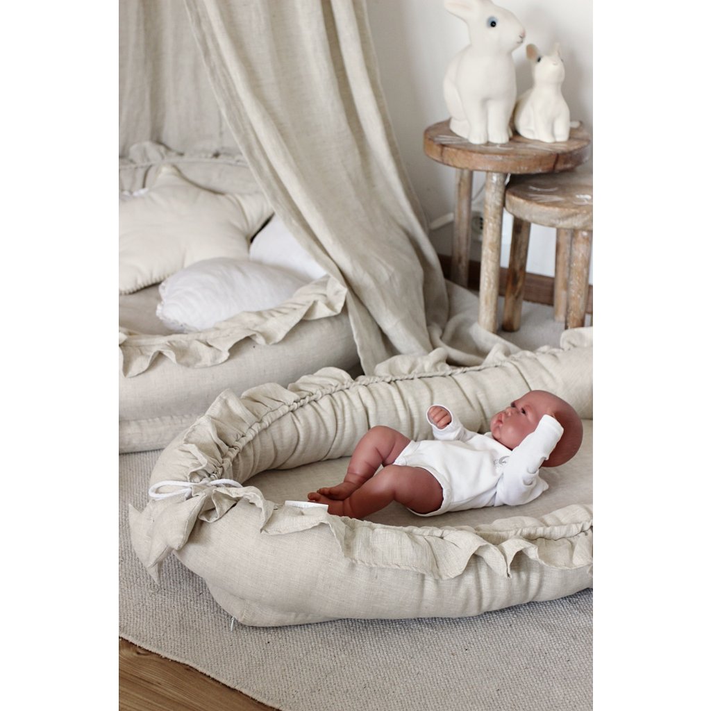 Baldachýn zo 100% ľanu, ktorý je antialergický a antibakteriálny - ideálny pre deti. Baldachýn  je ľahký ako pavučinka a príjemný na dotyk.