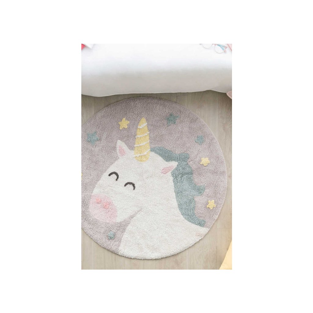 Lorena Canals prateľný bavlnený koberec s jednorožcom - okrúhly, 100cm
