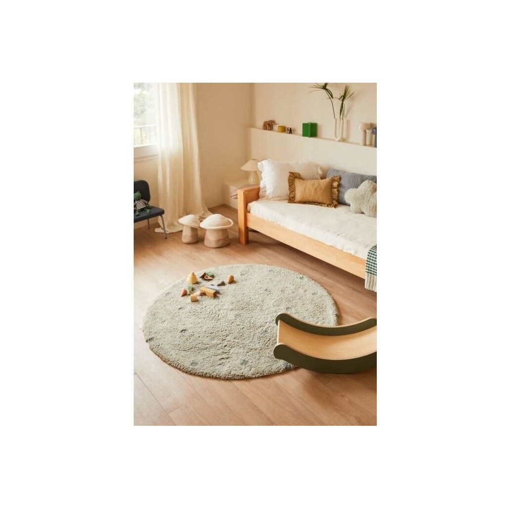 Ručne tkaný bavlnený detský koberec, ktorý môžete prať v domácej PRAČKE !!! Koberec je vyrábaný zo 100% prírodnej bavlny, použitá najvyššia kvalita bavlny a len prírodné farbivá. Ideálne pre Vaše deti, vhodné pre alergikov. Rozmer: priemer 140 cm.