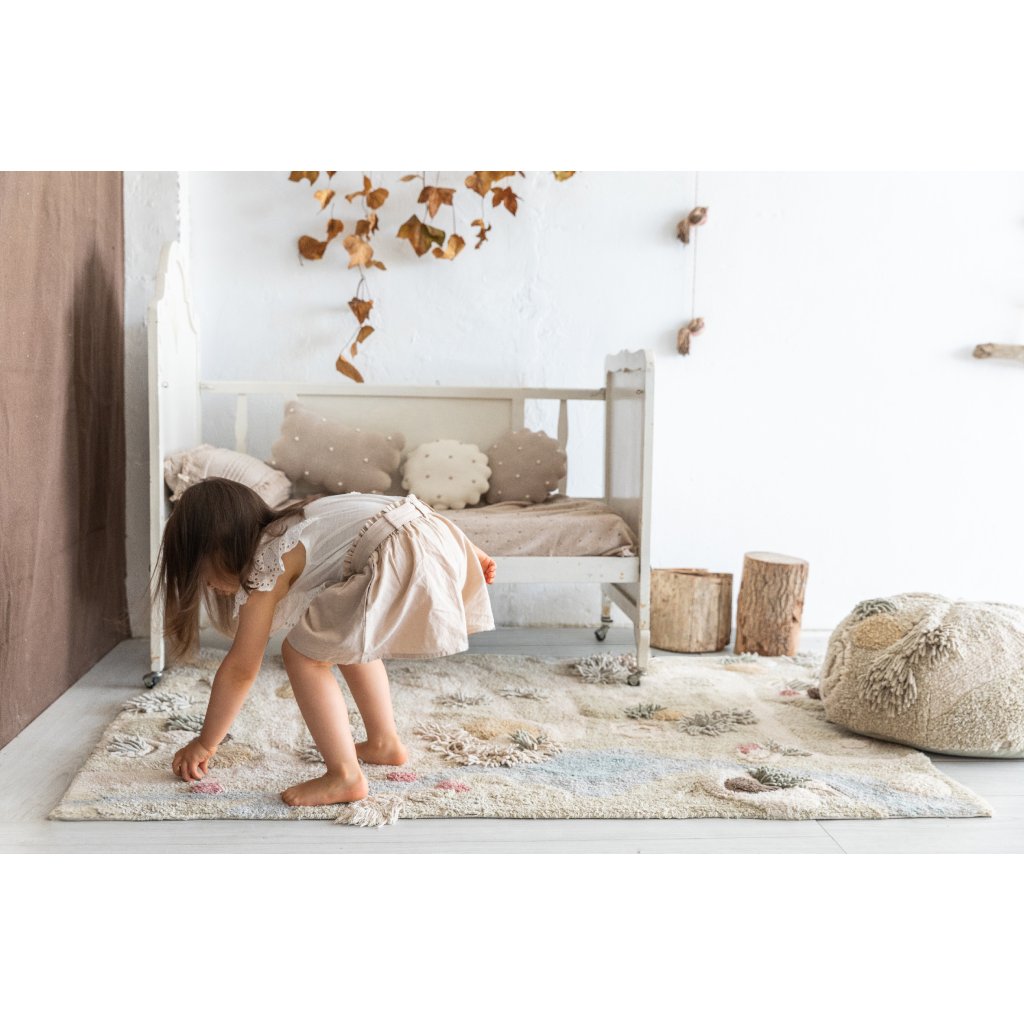 Ručne tkaný bavlnený detský koberec, ktorý môžete prať v domácej PRAČKE !!! Koberec je vyrábaný zo 100% prírodnej bavlny, použitá najvyššia kvalita bavlny a len prírodné farbivá. Ideálne pre Vaše deti, vhodné pre alergikov. Dostupné rozmery: 120 x 160 cm.