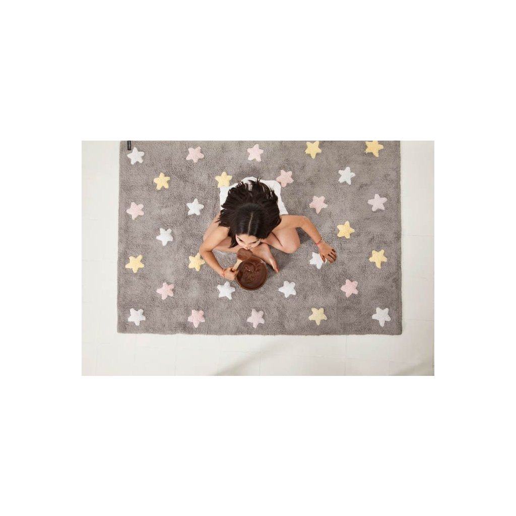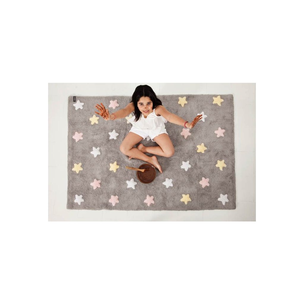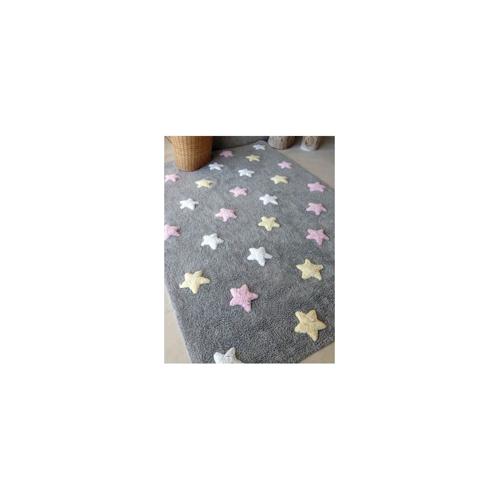 Lorena Canals prateľný koberec Tricolor Stars Grey - Pink