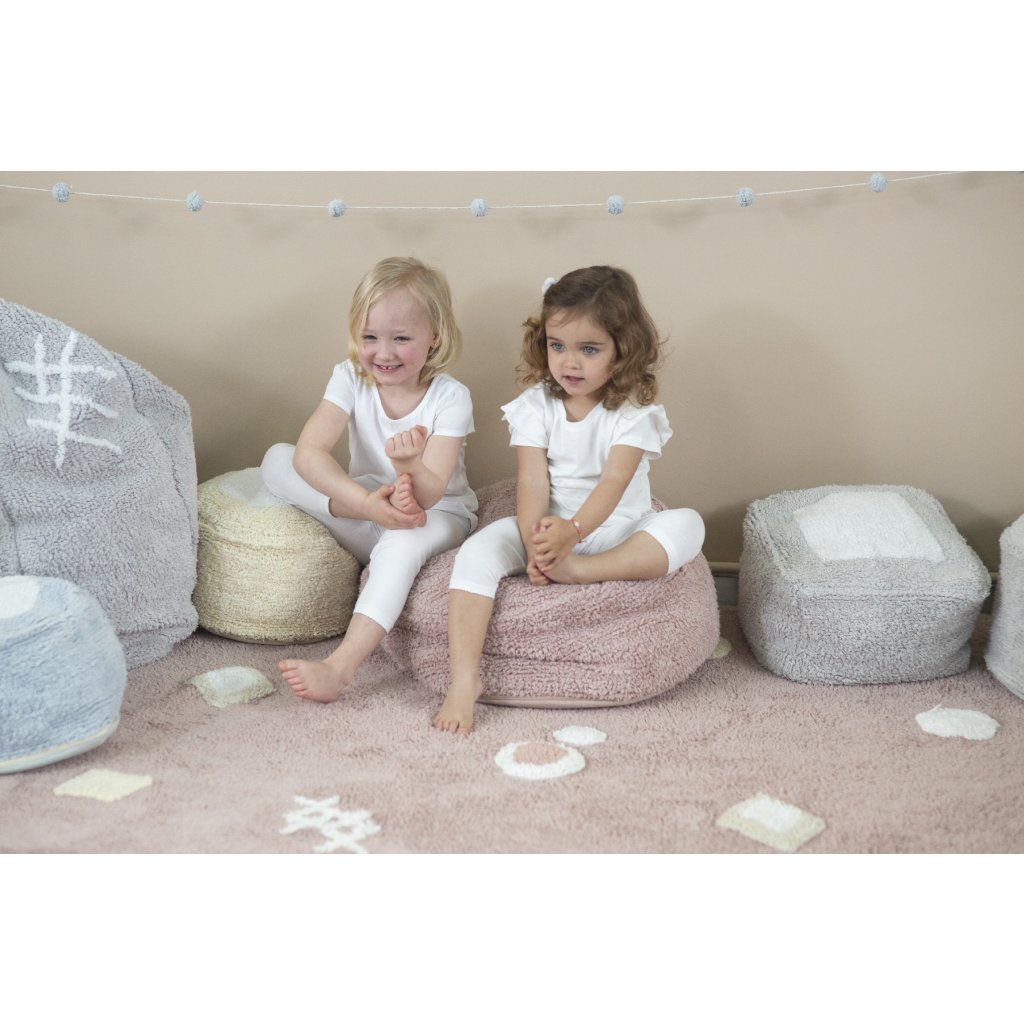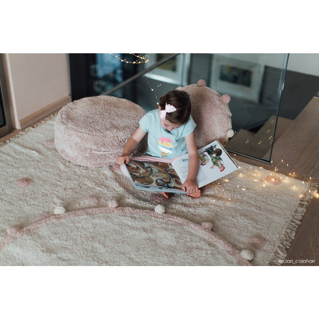 Ručne vyrobené bavlnené puff kreslo s rúčkou na prenášanie je ideálnym doplnkom do detskej izby. Vďaka svojej funkčnej veľkosti nezaberie veľa miesta. Poťah je snímateľný a dá sa oprať v domácej práčke, ideálne pre deti.