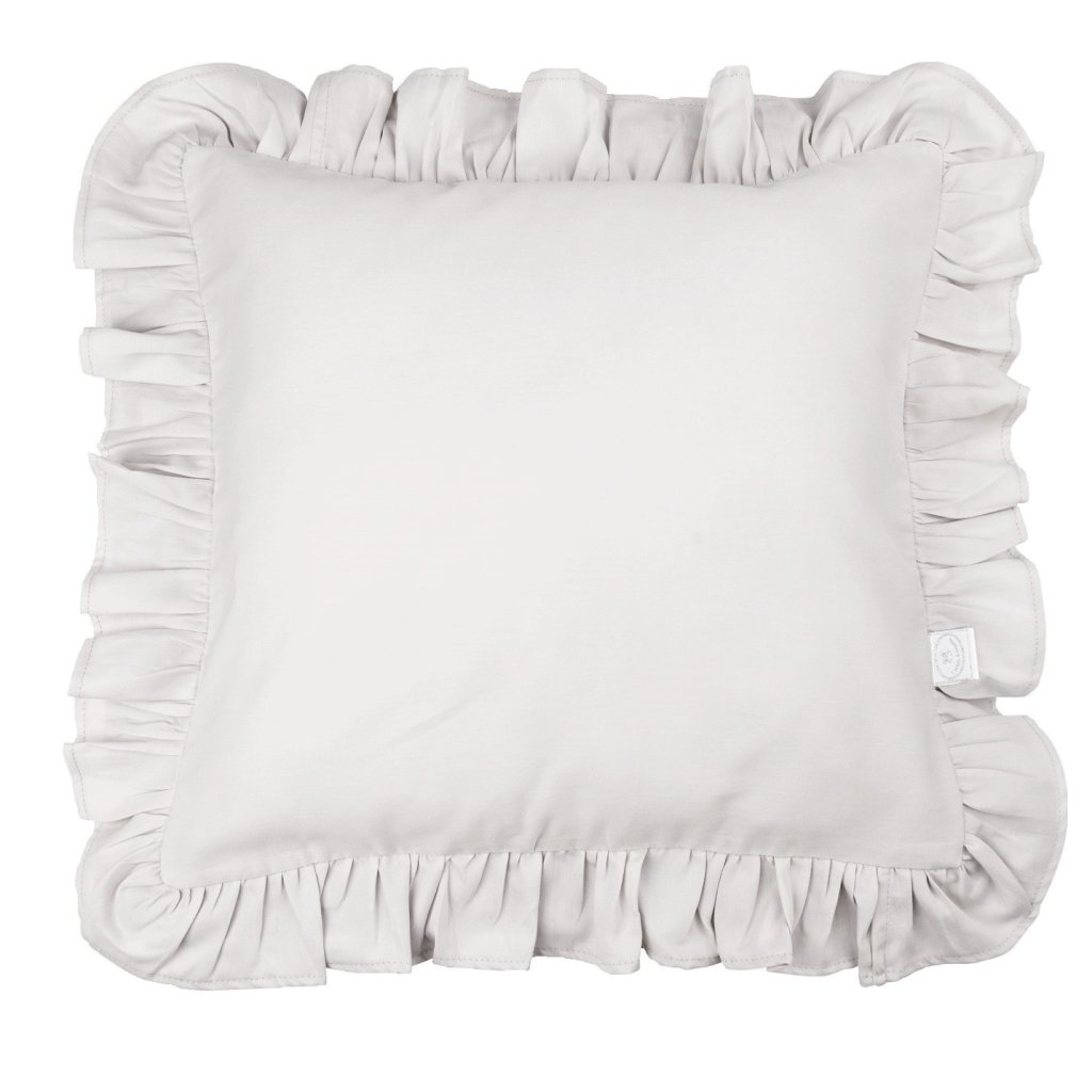 Margaret vankúš s volánom z prémiovej saténovej bavlny s výplňou - bledošedá