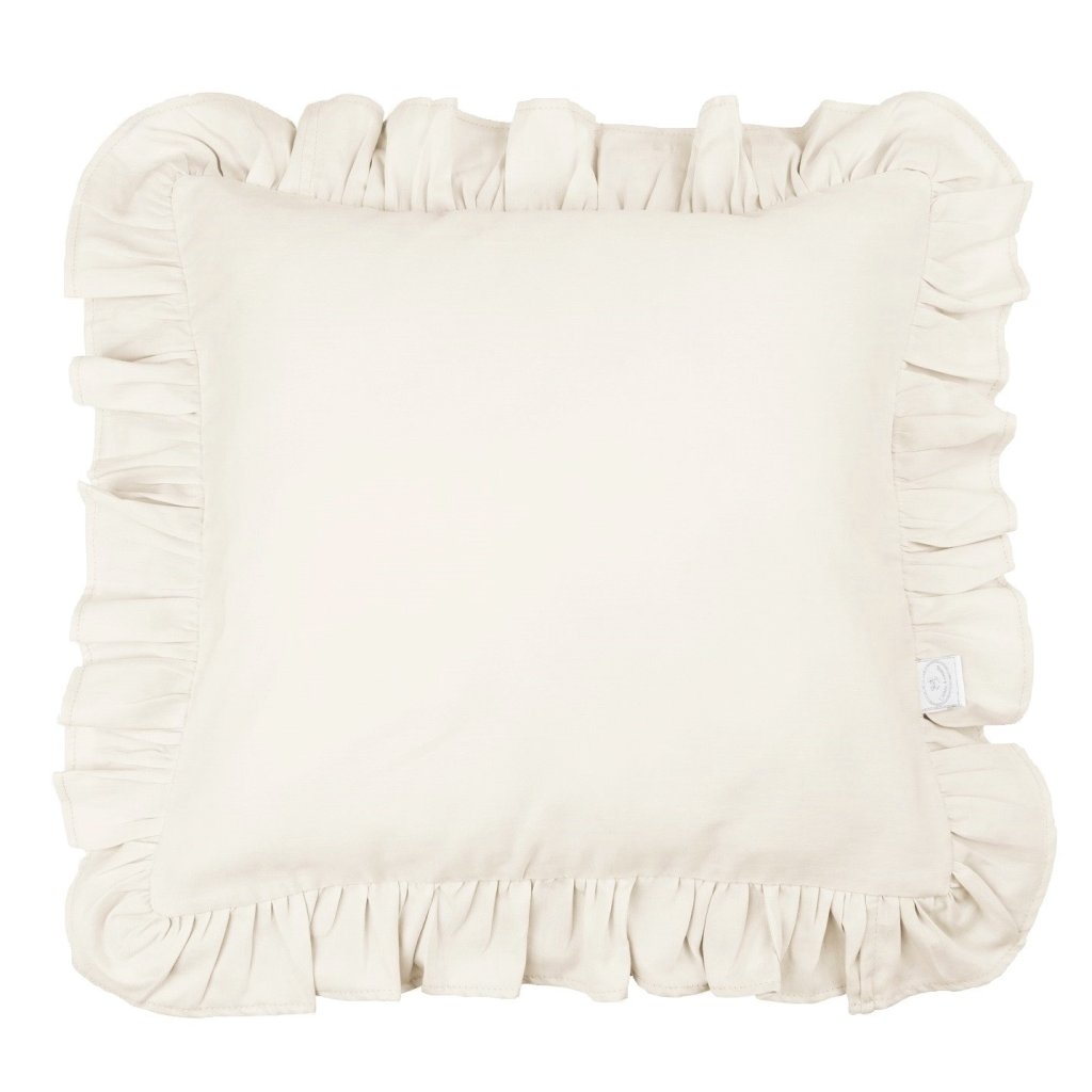 Margaret vankúš s volánom z prémiovej saténovej bavlny s výplňou - vanilka