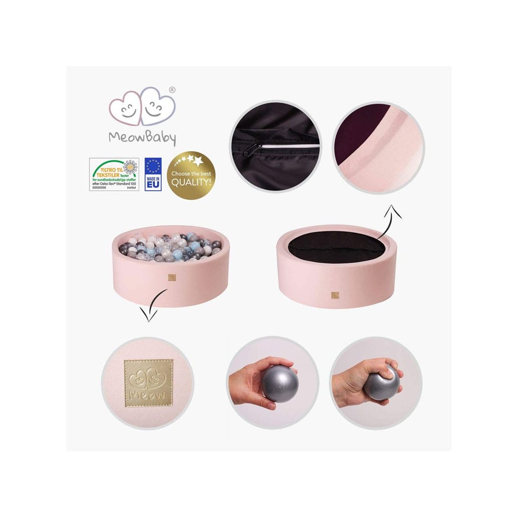 MeowBaby® Cotton detský suchý bazén s guličkami 90x30cm + 200 guličiek – ružová, guličky: biela/zlatá/transparentná/mätová