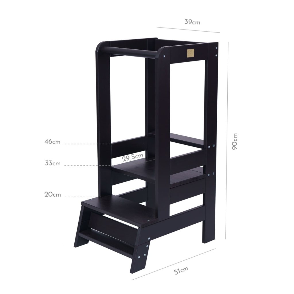 MeowBaby® montessori drevená učiaca veža pre deti - čierna