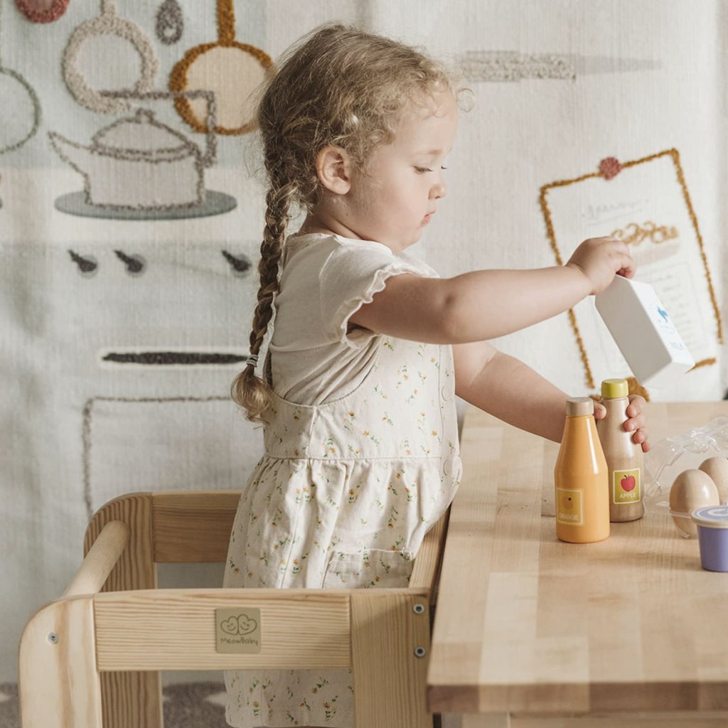 MeowBaby® montessori drevená učiaca veža pre deti - prírodná