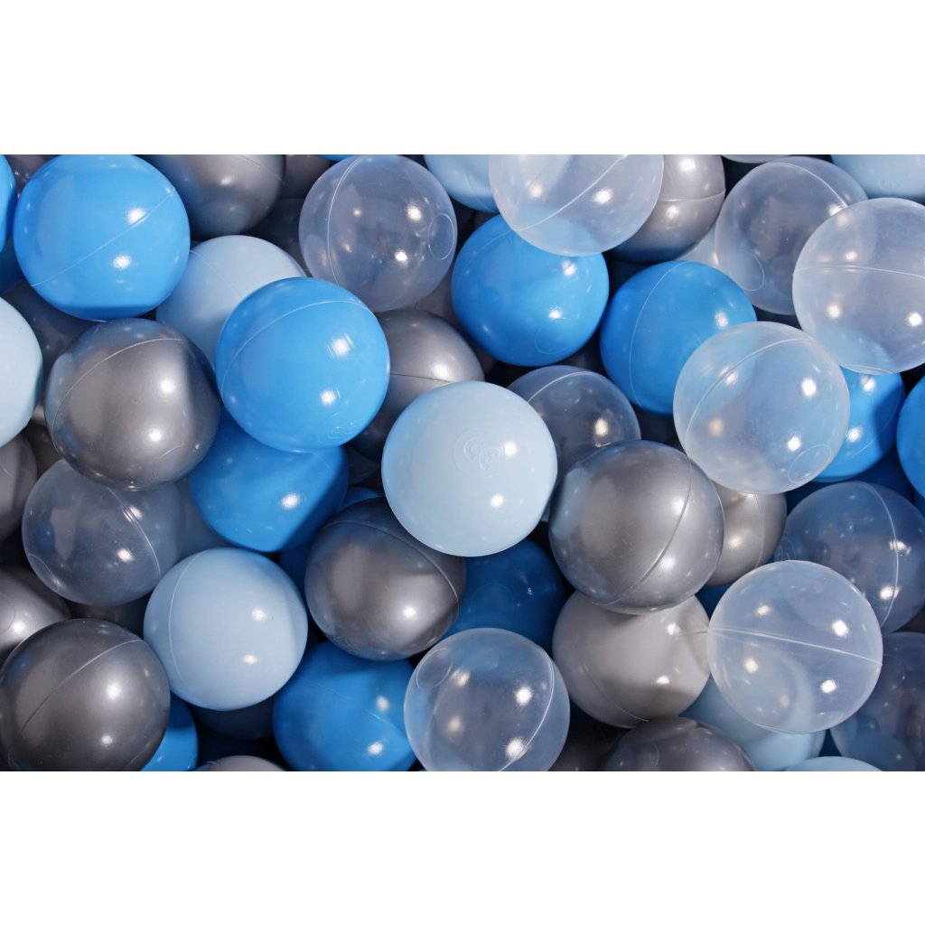 MeowBaby® SADA plastové loptičky do suchého bazéna Ø7cm - bledomorá,modrá,strieborná,transparentná