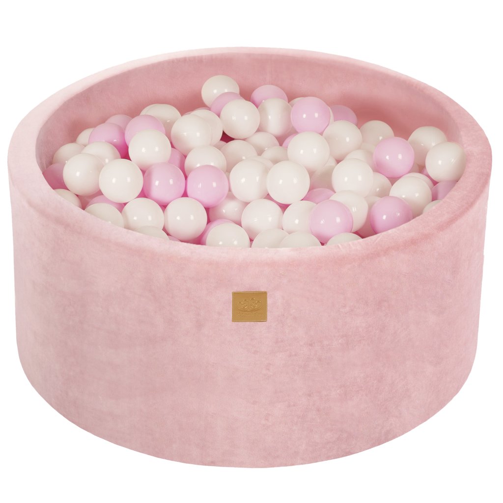 MeowBaby® Velvet detský suchý bazén s guličkami 90x40cm + 300 guličiek – ružová, guličky: biela/bledoružová